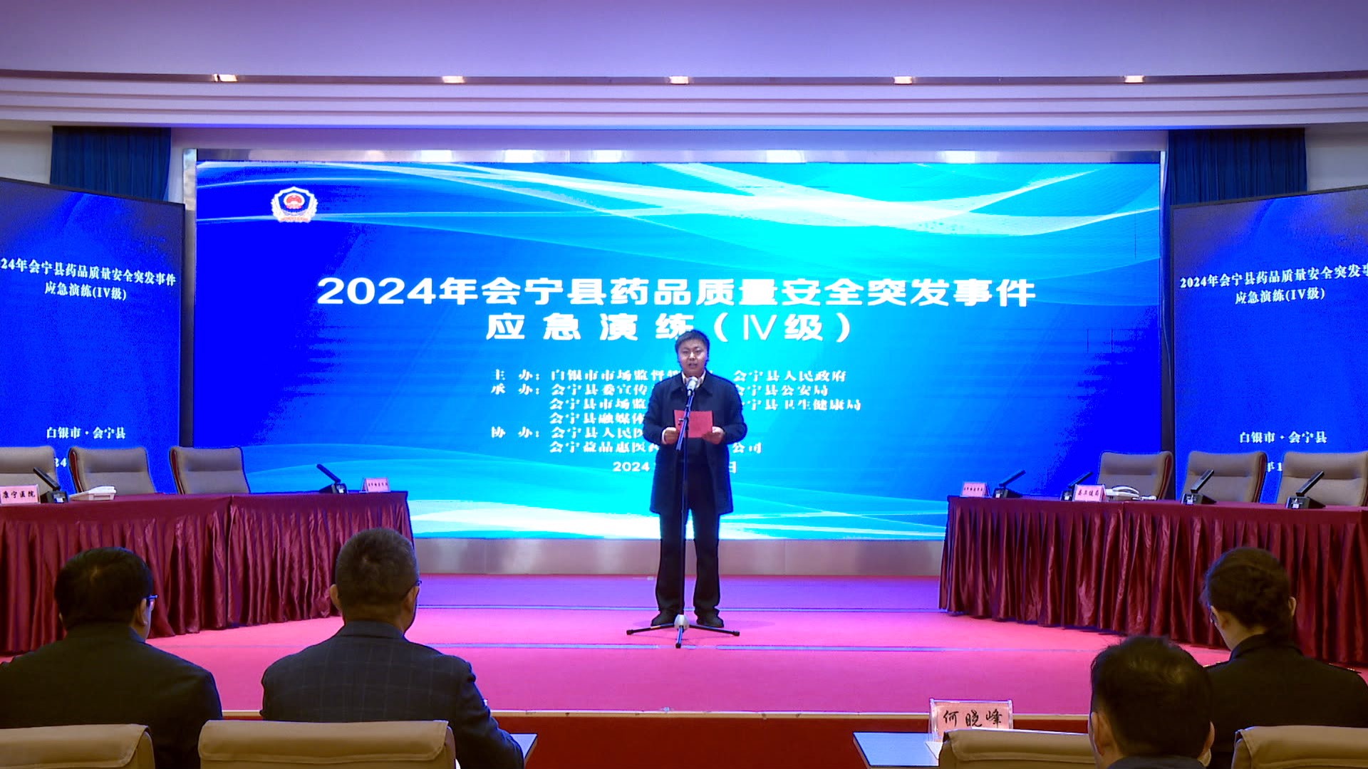 此次演练,旨在进一步提高全市药品安全突发事件应急处置能力,确保发生药品安全突发事件时能妥善有效处置,保障人民群众的身体健康和生命安全。演练由白银市市场监督管理局、会宁县人民政府主办,会宁县委宣传部、会宁县公安局、会宁县市场监督管理局、会宁县卫生健康局、会宁县融媒体中心承办。会宁县副县长何晓峰致辞。白银市市场监督管理局党组成员、副局长乔登华观摩演练并作点评。