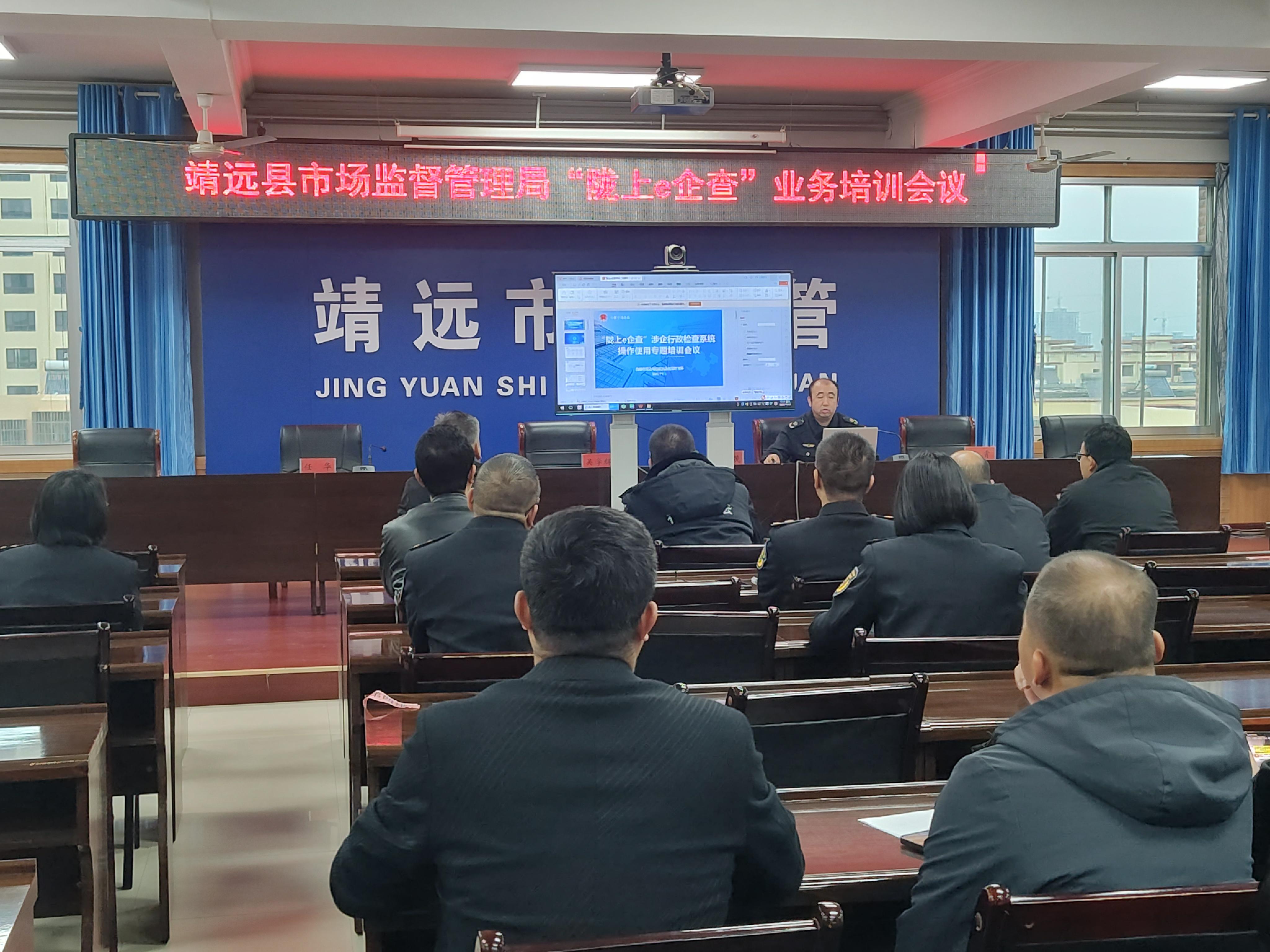 为深入贯彻落实优化营商环境决策部署,切实减轻企业负担,杜绝乱检查、违规检查等问题,同时推动“陇上 e 企查”系统全面落地应用,近日,靖远县市场监督管理局组织开展全局范围内“陇上 e 企查”系统专题培训会,该局监管人员全员参训,以数字化手段提升监管效能,助力营商环境持续优化。
