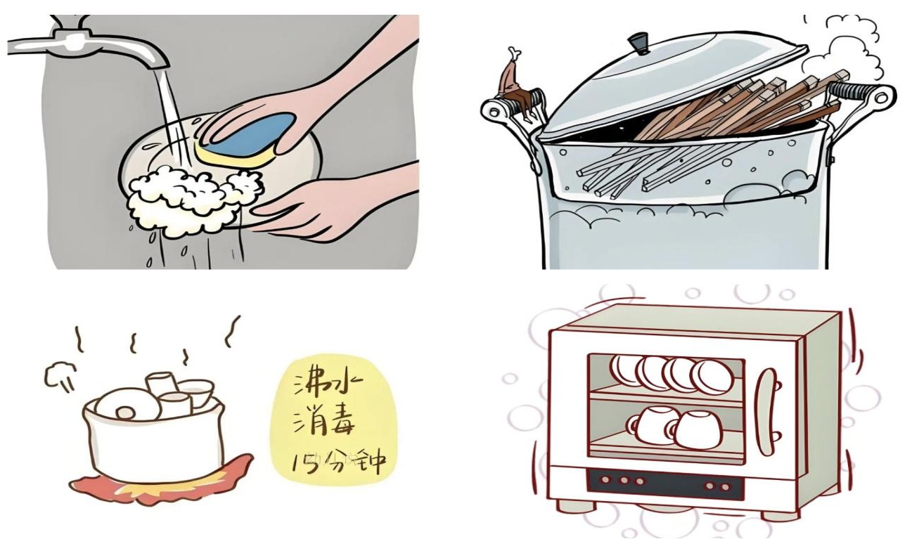 (3)定期消毒。家庭可采用煮沸或蒸汽等方式对餐饮具进行定期消毒。