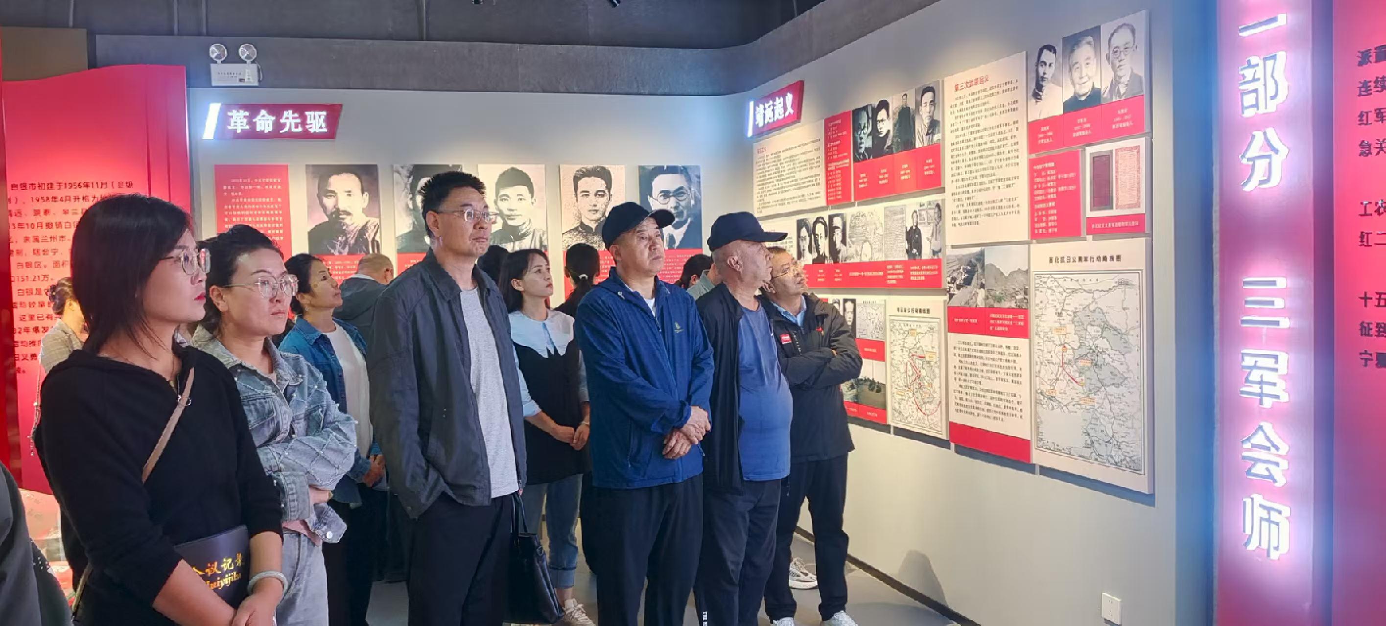 活动中,全体党员首先在庄严的党旗前高举右拳,重温入党誓词,铿锵有力的誓言在展厅里回响。随后,在讲解员的引导下,大家参观了《红色白银》主题展览。展览以白银地区红色历史为主线,通过白银星火、三军会师、宁夏战役、抗日救亡、迎接解放、砥砺前行六个部分全景呈现了革命时期的英雄事迹和中华人民共和国成立后白银儿女建设美好家园的奋斗画卷。一幅幅承载着厚重历史的展板前,党员驻足凝视、久久不愿离去,神情庄重而肃穆。每一件展品都像一位“无声的讲述者”,静静诉说着革命先辈们在烽火岁月里浴血奋战、舍生取义的英勇事迹。党员俯身细观,仿佛穿越时空与先辈对话,真切触摸到了那个激情燃烧的年代里,革命先辈们炽热的家国情怀与坚定的理想信仰。不少党员眼眶泛红,轻声交流着对先辈事迹的感悟,那份融入血脉的红色基因在这一刻被深深唤醒,心中的崇敬与使命感愈发强烈。