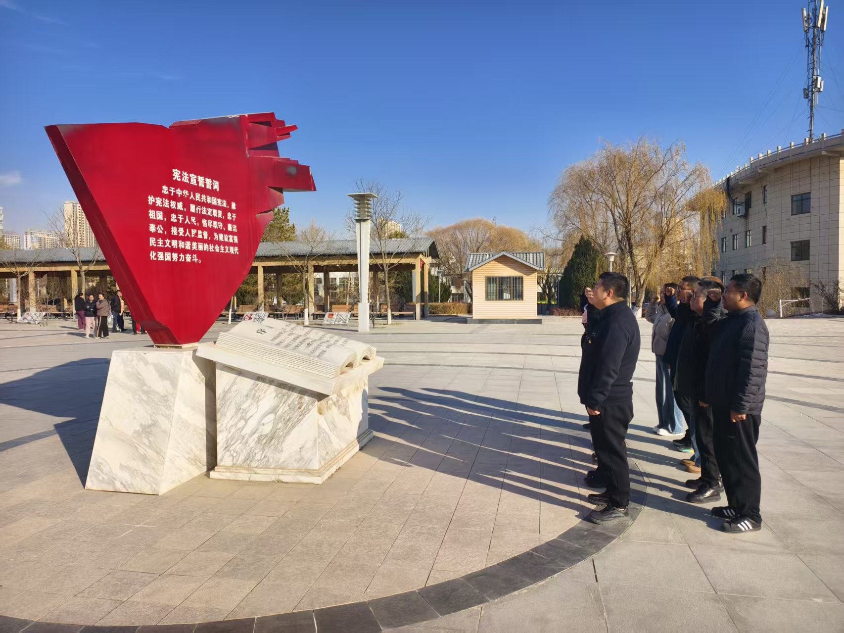 今年是全民普法40周年,亦是“八五”普法规划收官之年。为深入学习贯彻党的二十届四中全会精神,全面贯彻落实习近平法治思想,切实响应全国“宪法宣传周”活动部署,12月5日,白银市计量测试检定所党支部组织全体党员赴金岭公园宪法广场,紧扣“学习贯彻习近平法治思想,推动宪法深入人心”核心主题,开展“弘扬宪法精神 践行计量担当”专题宪法宣传主题党日活动,以实际行动推动宪法精神落地生根,为法治社会建设注入计量力量。