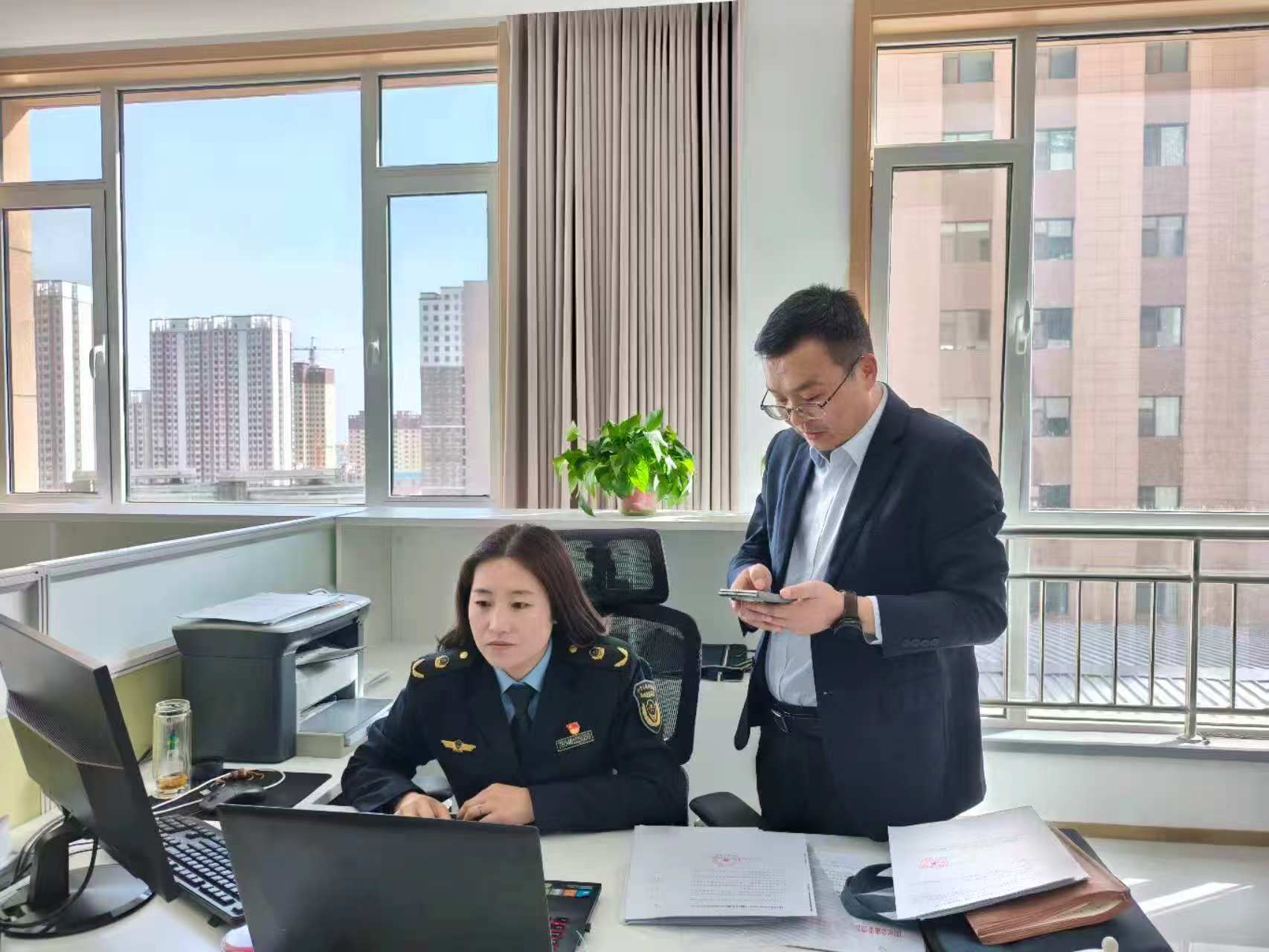 针对此次17家分支机构主体多、材料复杂、时间紧迫的特点,该局窗口工作人员第一时间组建专项服务小组,一方面提前与企业对接,梳理整合登记材料清单,逐一指导完善填报信息,避免因材料问题导致企业反复跑;另一方面优化内部审批流程,开通“绿色通道”,实行“专人跟进、同步审核、即时办结”机制,工作人员加班加点核对前置许可、校验登记数据,确保每一份材料审核精准、每一个流程衔接顺畅。近日,仅用短短半天时间,就为甘肃农村商业银行股份有限公司白银区17家分支机构全部核发营业执照。