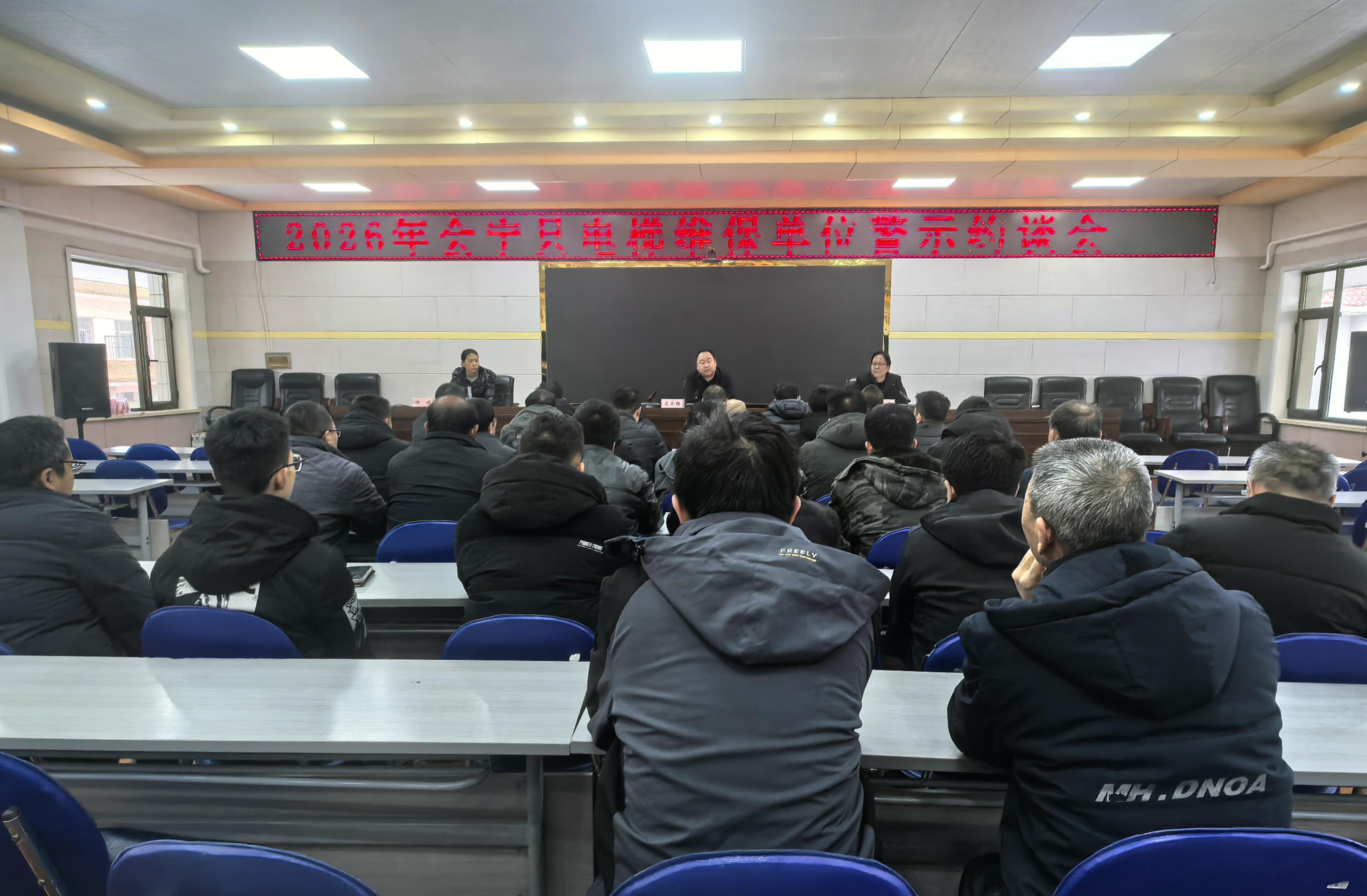 1月29日,会宁县市场监督管理局召开全县电梯维保单位警示约谈会议。会议通报了当前电梯维保工作中存在的问题,安排部署了春节及两会期间电梯维保工作。各维保单位全体人员参加此次会议。