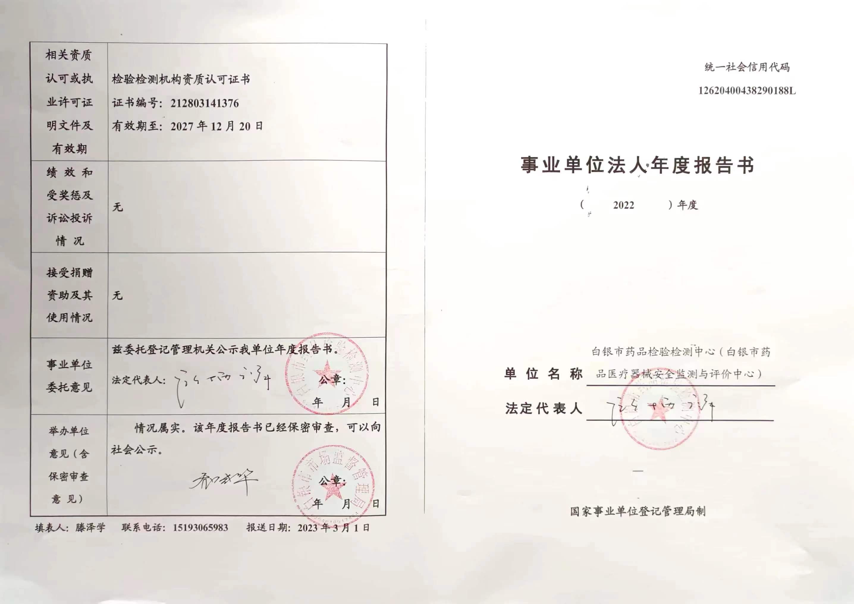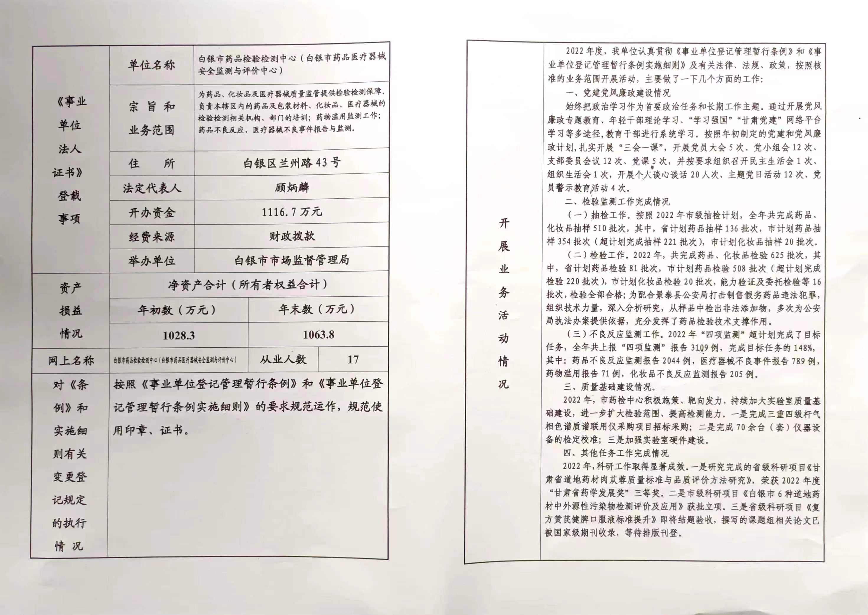 白银市药品检验检测中心2022年度报告书