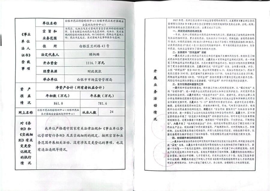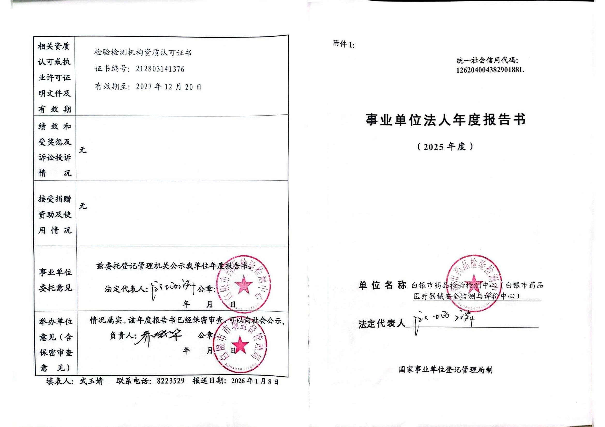 事业单位法人年度报告书(白银市药品检验检测中心)
