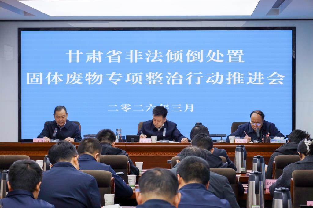 会议要求,要深入贯彻落实党中央、国务院关于固体废物污染防治的重大决策部署,全面落实《固体废物综合治理行动计划》及全国、全省生态环境保护大会精神,提高政治站位,增强专项整治行动的责任感、使命感和紧迫感,坚持问题导向,不断强化攻坚举措,全力确保专项整治见行见效。一要开展深度排查,确保整治到位。充分运用“人巡+技查”手段,对重点区域开展拉网式排查,做到不留死角、不留盲区。强化问题整改,确保2026年底前整改完成率达到90%以上。二要加大执法力度,保持高压态势。将专项整治成效纳入省级生态环境保护督察重点内容,持续开展环境执法与联合监管,严厉打击非法倾倒处置固体废物违法行为。三要提升利用水平,推动绿色发展。加快固体废物利用处置设施建设,推进大宗工业固体废物综合利用示范项目,着力提升资源化利用能力。四要完善监管体系,提升智治能力。加强跨部门数据共享,深化企业和基层监管人员业务培训,切实提高数据填报质量与平台操作水平。五要深化“无废城市”建设,构建长效机制。加快推进省级“无废城市”建设,强化固体废物普法教育,推动治理模式从“专项整治”向“常态长效”转变,为持续改善全省生态环境质量、筑牢国家西部生态安全屏障、建设美丽甘肃奠定坚实基础。