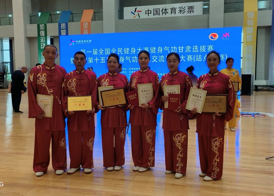 在刚刚结束的第一届全国全民健身大赛健身气功甘肃选拔赛暨全省第十五届健身气功技能交流展示大赛(站点联赛)中,我市代表队喜获集体八段锦一等奖,大舞一等奖,气舞二等奖。同时荣获个人项目1个第二名、1个第三名、1个第四名、3个第五名、1个第七名、1个第八名的优异成绩。