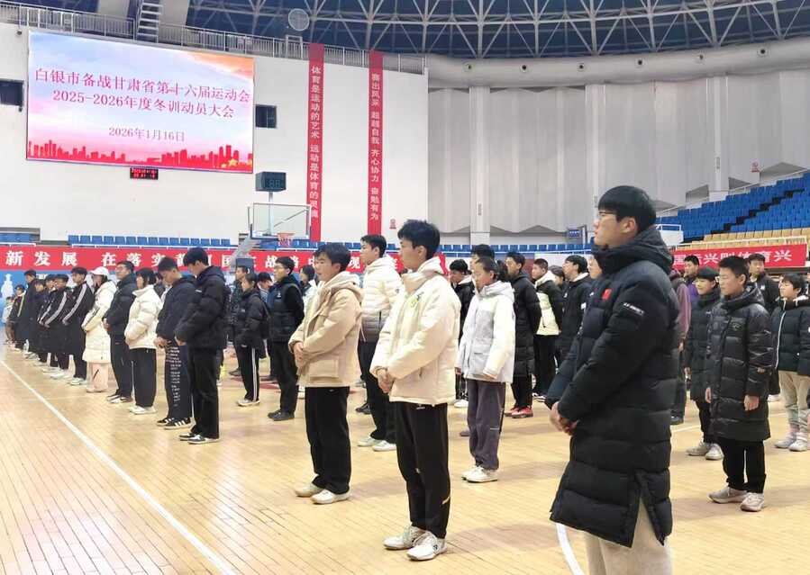 2026年1月16日,白银市备战甘肃省第十六届运动会暨2025-2026年度冬训动员大会在白银市体育中心召开。市体育局相关科室、市体校负责人及全体教练员、运动员共240余人参加。