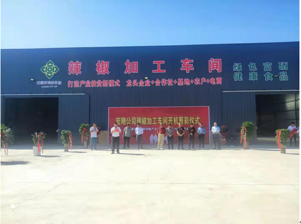 为了让更多的群众通过种植辣椒实现增收致富,今年年初,合作社正在建设3800平方米辣椒初加工车间和500平方米辣椒深加工车间,9月10日,甘肃新宏翔农业科技农民专业合作社新建的3800平方米的辣椒加工车间盛大开业。大型辣椒烘干设备日烘干量达20吨,配套的辣椒去巴机、色选机等设备齐全,提升了生产加工能力,产业链更加完善,辣椒种植产业得到发展壮大,更好地为景泰的群众做好服务。