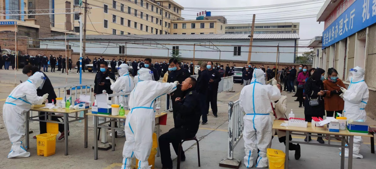 10月25日,白银市运管处联合白银区运管所组织城区2家出租车公司(银冠、驰辰)、2家客运公司(银冠、运兴)、2家旅游客运公司(大森林、壮观天地)1300余名从业人员开展第二轮核酸检测。