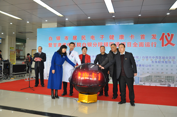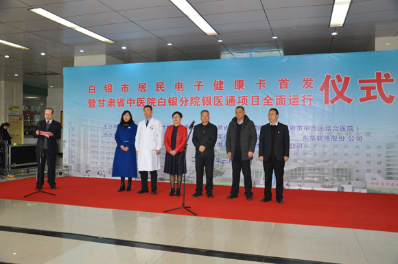 当天,省中医院白银分院“银医通”项目全面投入运行,中国建设银行甘肃省分行、东华软件、联迪商用设备、甘肃万维等相关企业负责人参加了活动。