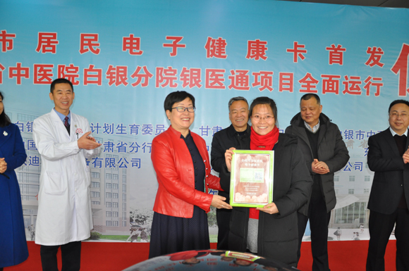 2019年1月14日上午,“甘肃省居民电子健康卡”在我市第一人民医院、省中医院白银分院同步首发,市卫生计生委在省中医院白银分院举行了首发仪式。市政协副主席于萍为白银市首位申领居民电子健康卡的群众发卡,市卫生计生委党组书记、主任冯双成出席仪式并讲话。各县区卫生计生局及全市二级以上医院负责人参加首发仪式并现场学习观摩居民电子健康卡的申领流程。