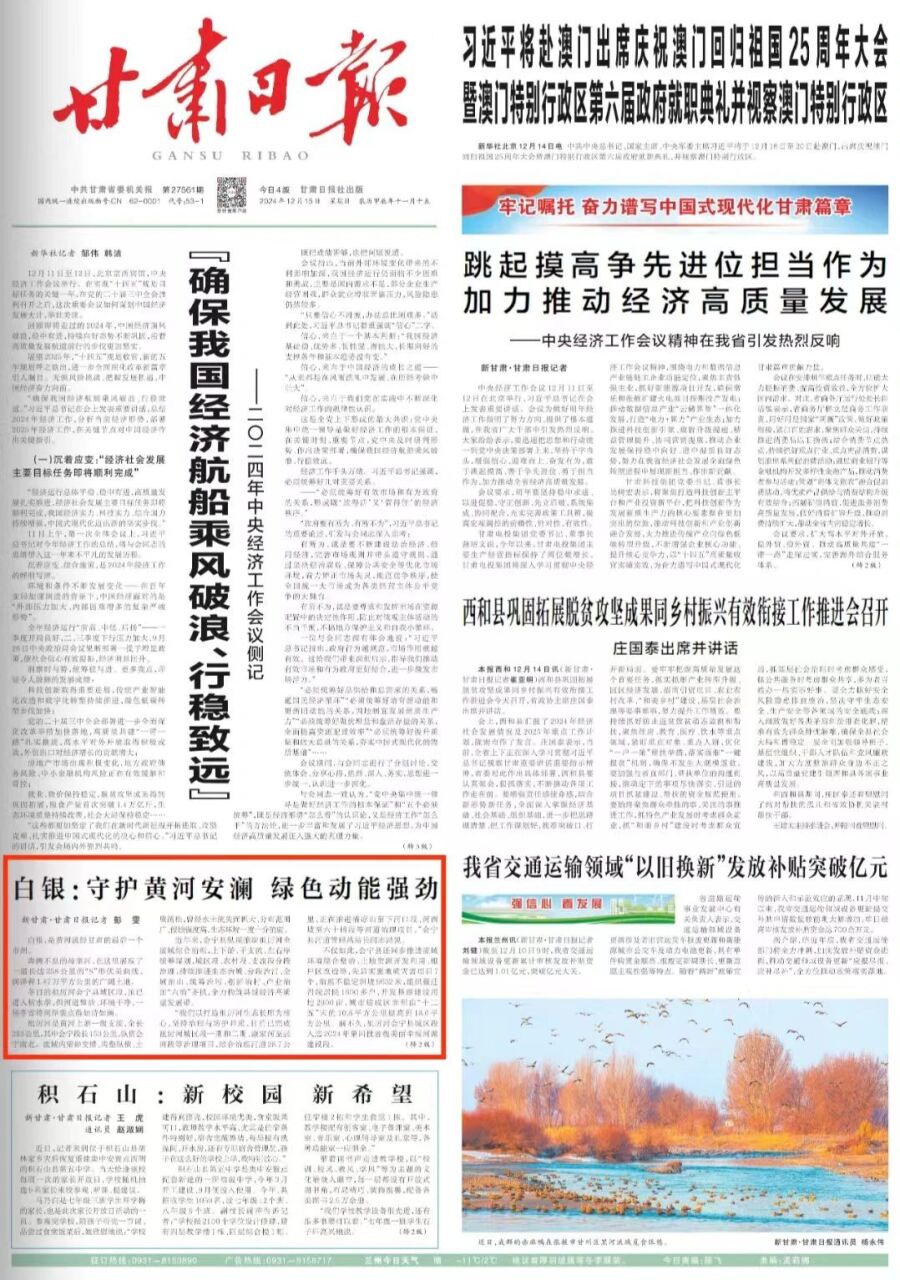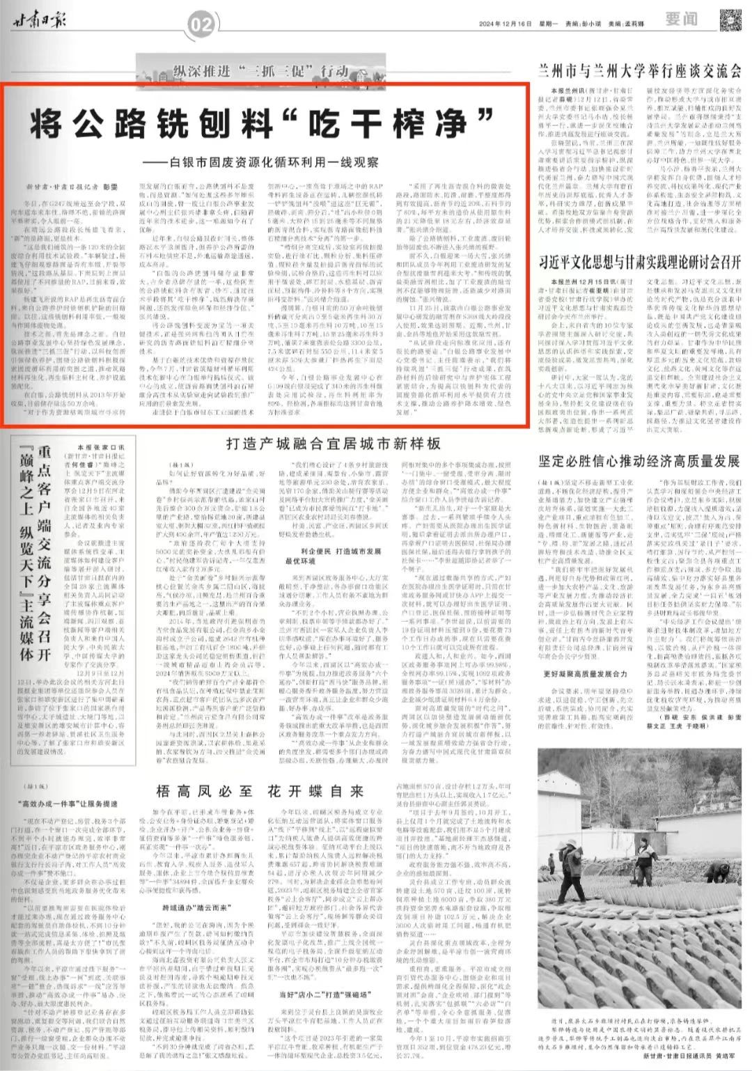 12月16日,《甘肃日报》报道,白银公路事业发展中心围绕公路铣刨料积极探索固废循环利用的突围之道,推动筑路材料再生化、再生集料主材化、养护设施装配化。