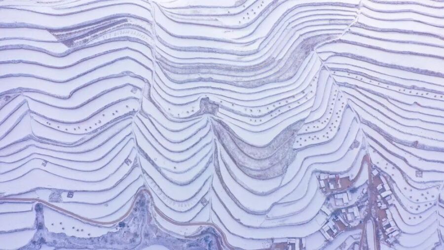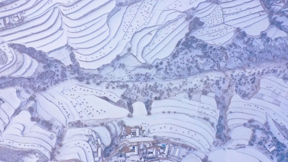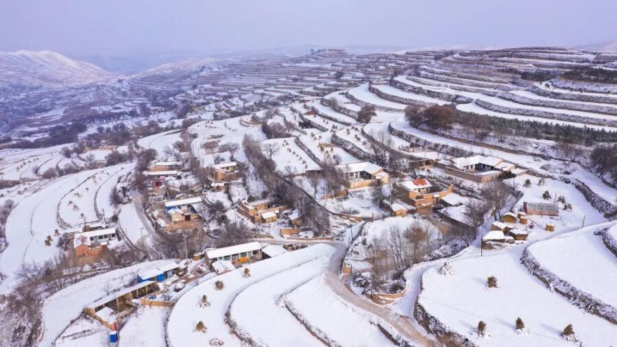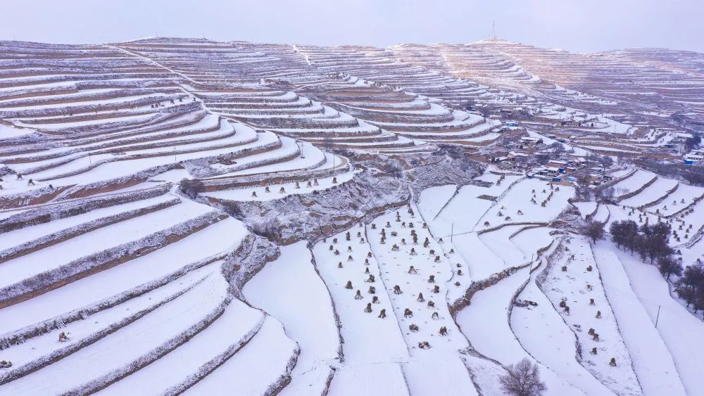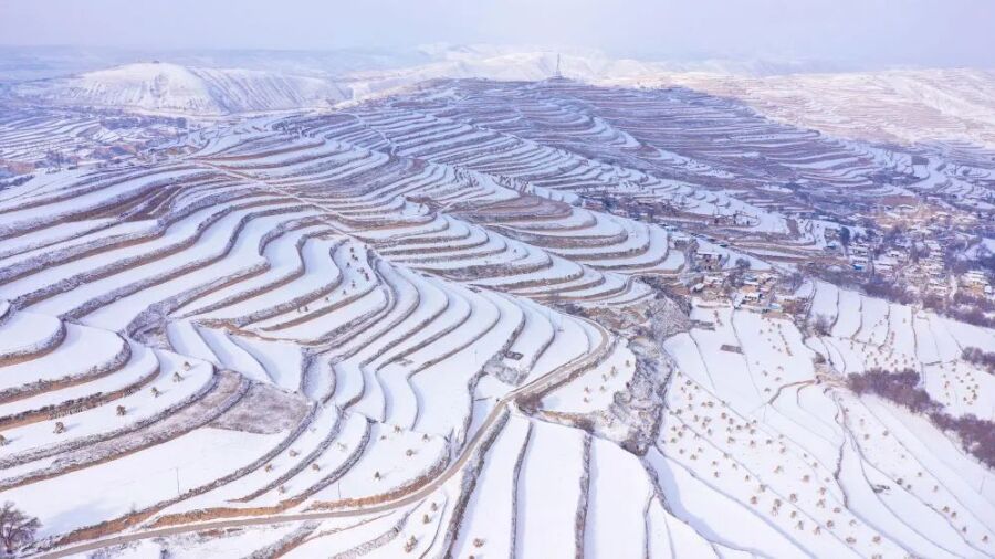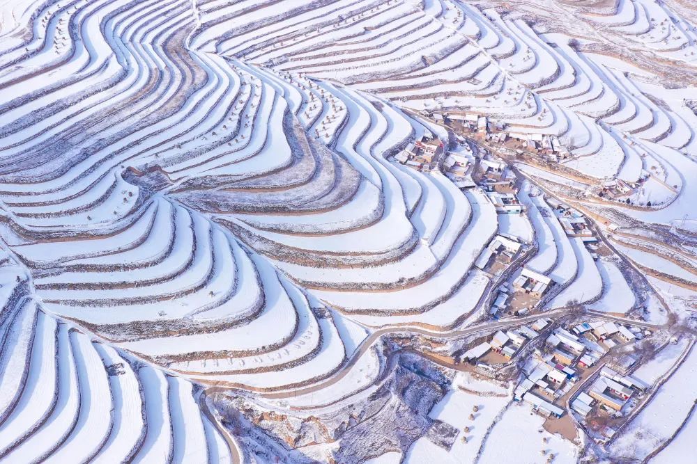 近日,甘肃省白银市会宁县迎来降雪天气,层层叠叠的梯田与皑皑白雪交相辉映,构成了一幅壮丽的冬日画卷。