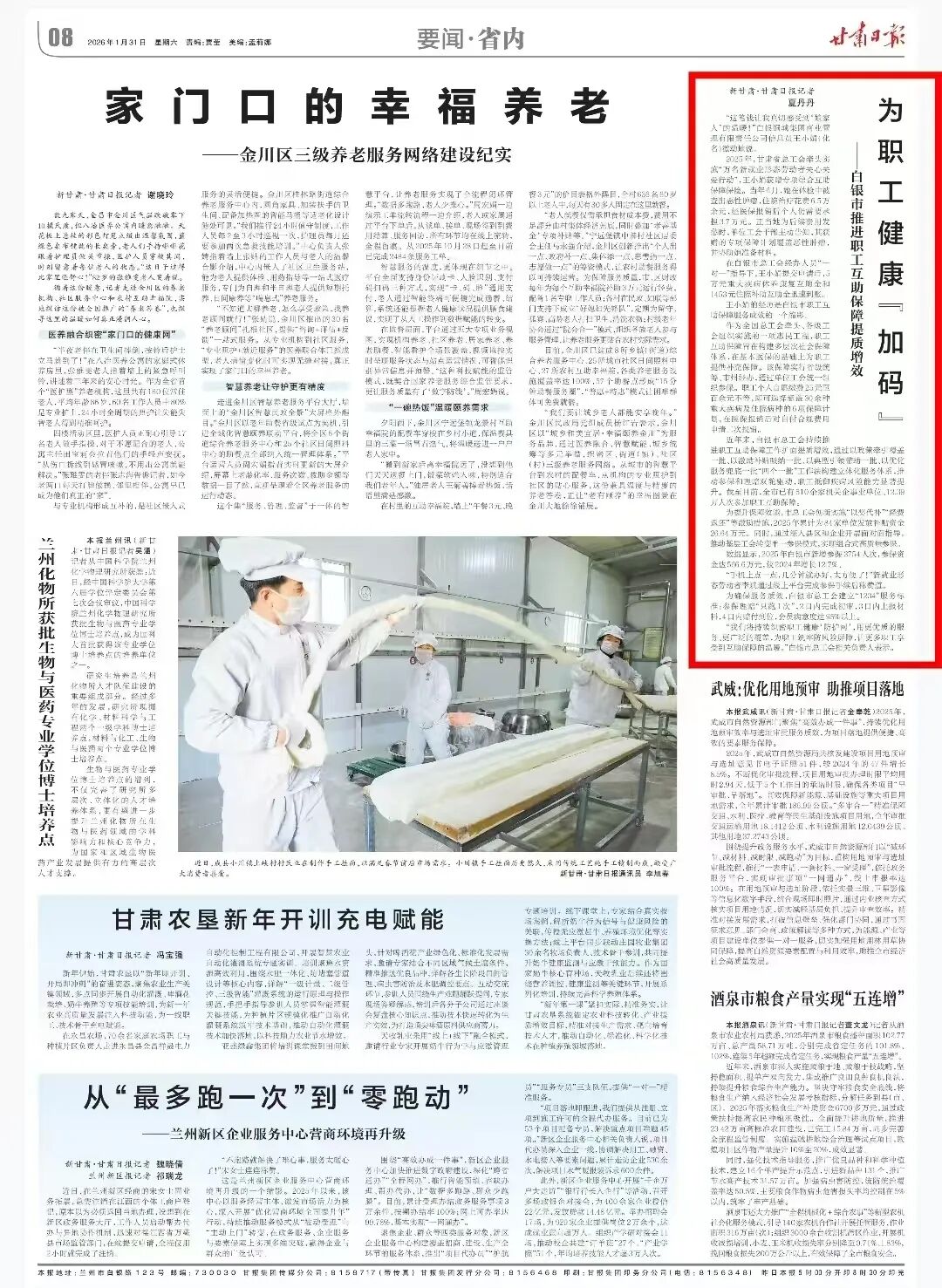 1月31日,《甘肃日报》报道,白银市总工会持续推进职工互助保障工作扩面提质增效,截至目前,全市已有510余家机关企事业单位、12.39万人次参加职工互助保障。