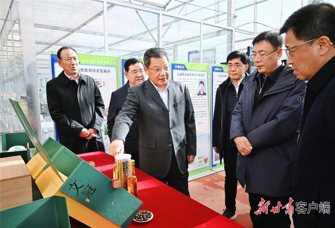 在白银市国家文冠果现代农业全产业链标准化示范基地,任振鹤详细了解基地建设、培育种植、科技研发、产品加工等情况。他强调,要深入践行绿水青山就是金山银山的理念,抓住产业结构调整这个关键,通过政府引导、企业带动、行业主抓、项目支撑,推动文冠果产业快速发展,着力培育绿色经济增长点,不断厚植高质量发展的绿色底色。要紧紧围绕种植示范、产品加工、生产销售到旅游观光、品牌打造、产业研发形成全链条体系化建设,推动一二三产业融合发展,实现生态环境效益、经济效益、社会效益共赢,走出一条生态美、产业兴、百姓富的可持续发展之路。