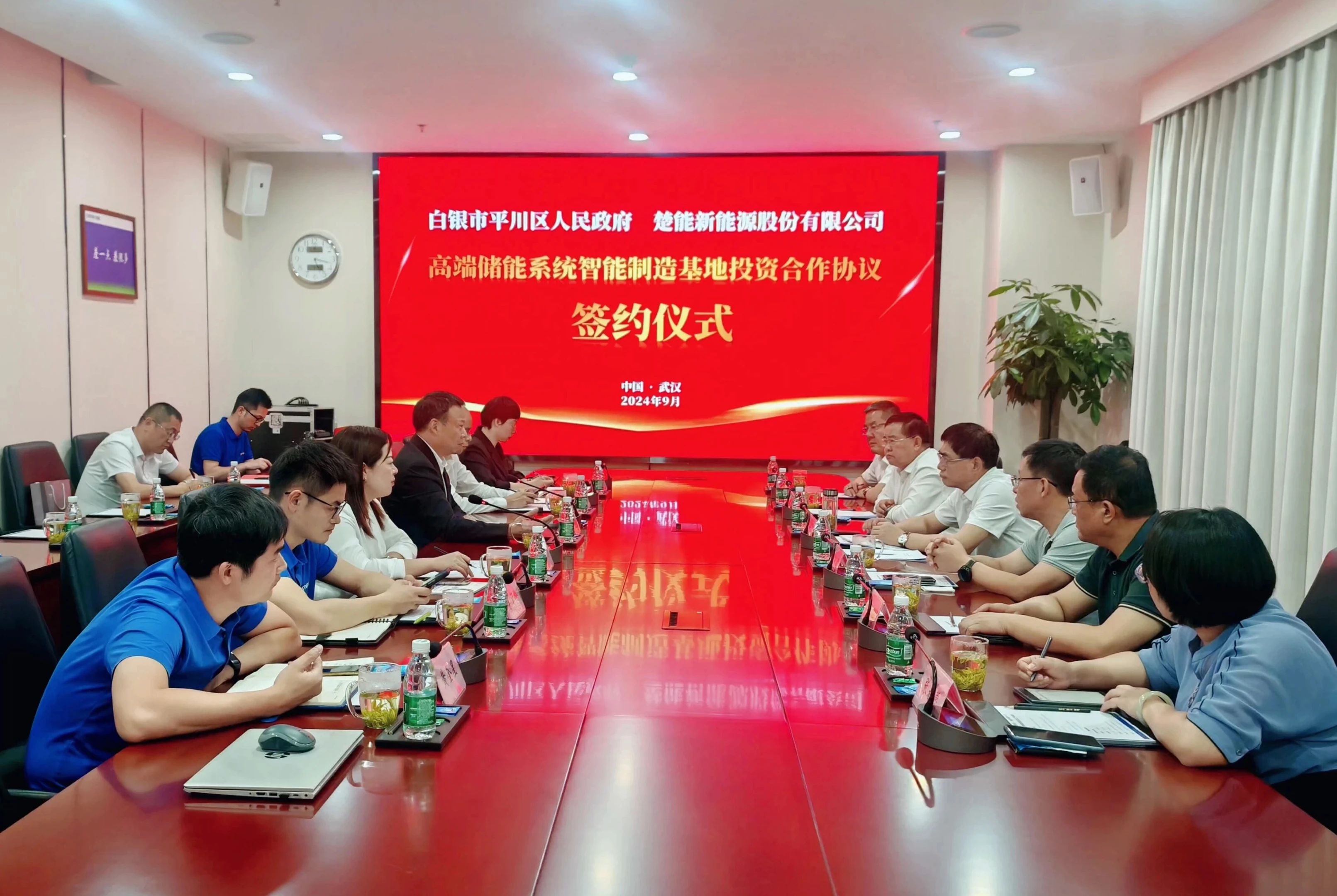 杨建武一行先后来到楚能新能源孝感基地、江夏基地,深入生产车间、测试中心,详细了解生产流程、产品研发、市场开拓等方面情况,并与楚能新能源股份有限公司董事长代德明座谈,面对面就有关合作事宜进行深入交流。会上,平川区政府与楚能新能源股份有限公司签订平川区高端储能系统智能制造基地项目合作协议。
