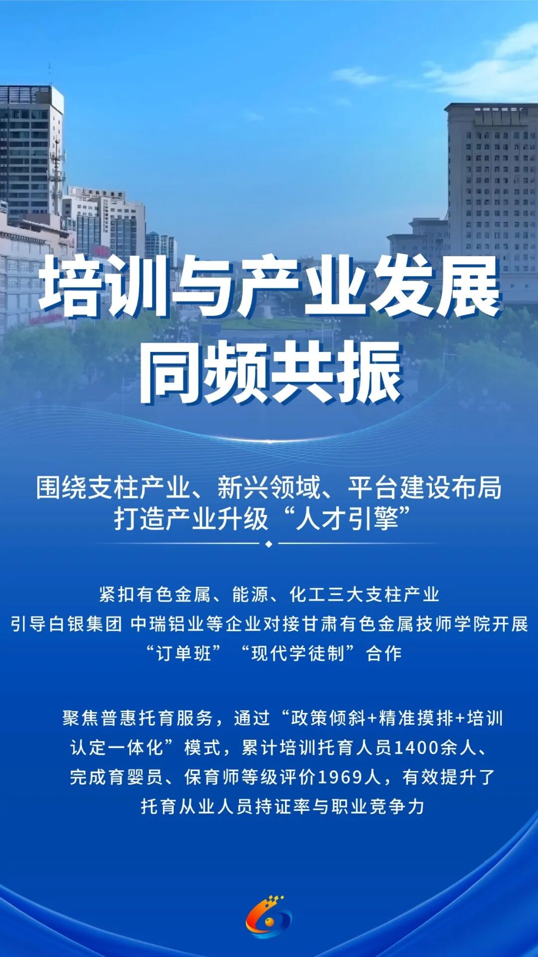 定向赋能产业发展,深化校企协同。将培训与产业发展同频共振,围绕支柱产业、新兴领域、平台建设布局,打造产业升级“人才引擎”。紧扣有色金属、能源、化工三大支柱产业,引导白银集团、中瑞铝业等企业对接甘肃有色金属技师学院,开展“订单班”“现代学徒制”合作。动态调整培训方向匹配岗位需求,抢抓低空经济、数字经济等发展机遇,制定《2025年度急需紧缺职业指导目录》,确定22个急需紧缺工种并上浮20%培训补贴,抢先开展无人机驾驶、健康管理师等新业态培训。聚焦普惠托育服务,通过“政策倾斜+精准摸排+培训认定一体化”模式,累计培训托育人员1400余人,完成育婴员、保育师等级评价1969人,有效提升了托育从业人员持证率与职业竞争力。甘肃有色金属技师学院获评国家级技能人才培训基地,白银集团孙清华工作室、甘肃省煤炭工业高级技工学校侯爱惜工作室被认定为省级技能大师工作室,为技能人才搭建成长平台。