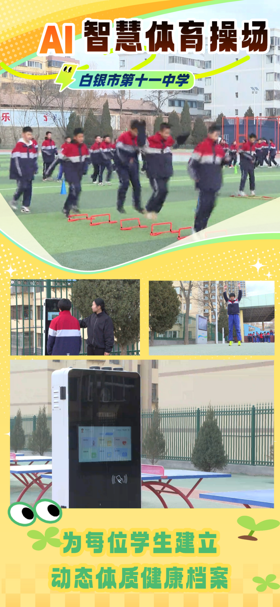 如今,AI智能体育屏已成为该校课间“新宠”。它不仅能实时记录学生运动数据并自动给出评价,还能通过后台生成个人运动曲线,为每位学生建立动态体质健康档案,持续追踪体测数据变化、直观呈现体质提升曲线,助力学生养成科学锻炼习惯。白银市第十一中学学生张海说:“我们可以在这里针对性训练体育中考项目,系统会清晰反映不足,帮助我们提高体育成绩。”“智慧体育的落地,能进一步放大十一中教学质量强校和艺体特色名校的优势。学校引入智慧体育体系,就是要让每一位学生都能在运动中收获成长,在特色教育中绽放潜能。”白银市第十一中学体育教研组长王东伟介绍。