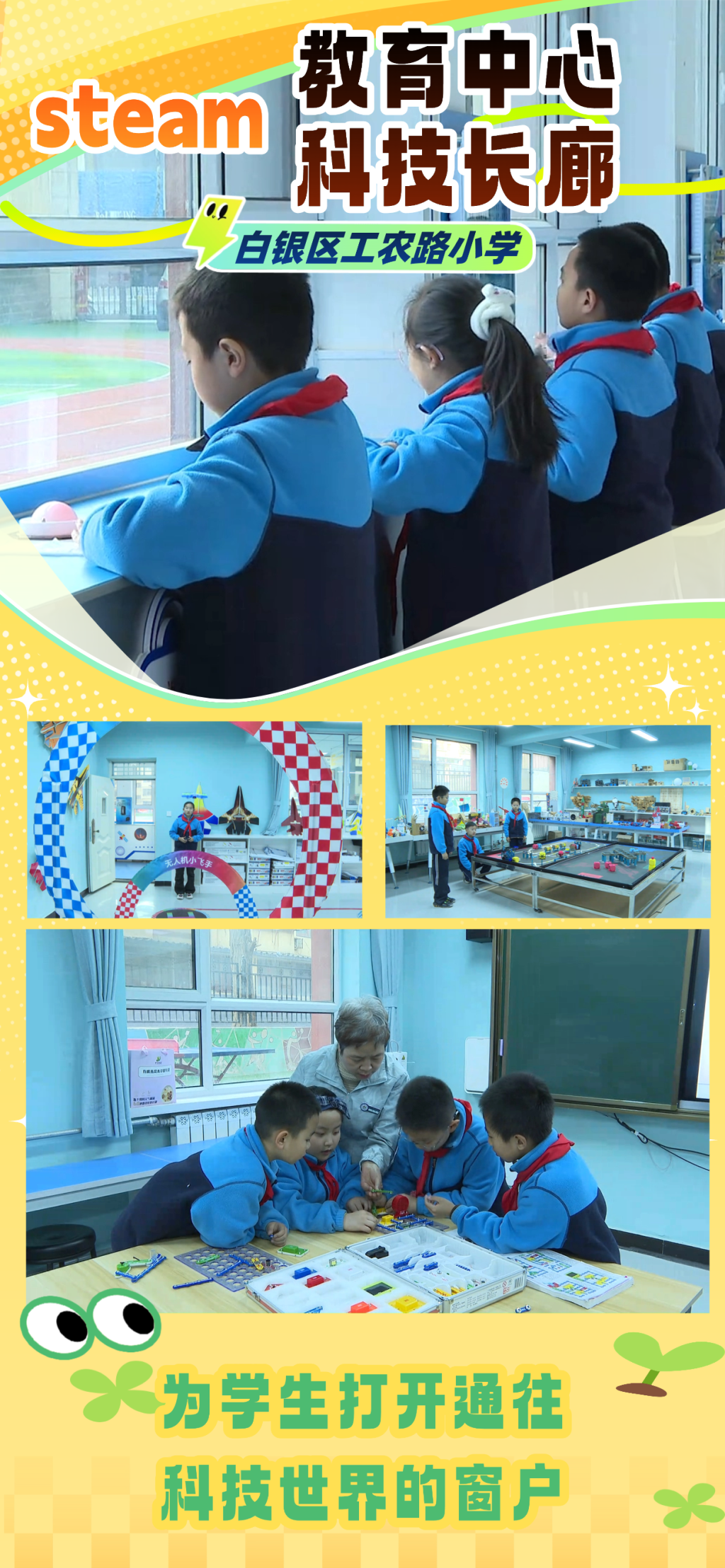 走进白银区工农路小学的Steam教育中心科技长廊,仿佛步入奇妙的科学世界。长廊内不仅展示着学生自主研发的科创作品、历年科技创新大赛获奖成果,还设有科创体验区、科学实验演示台等互动板块。白银区工农路小学教学副校长杨湘说:“我校Steam教育中心科技长廊的核心作用,是培养学生的创新思维、实践能力与跨学科解决问题的能力,助力学校构建科创教育生态。”