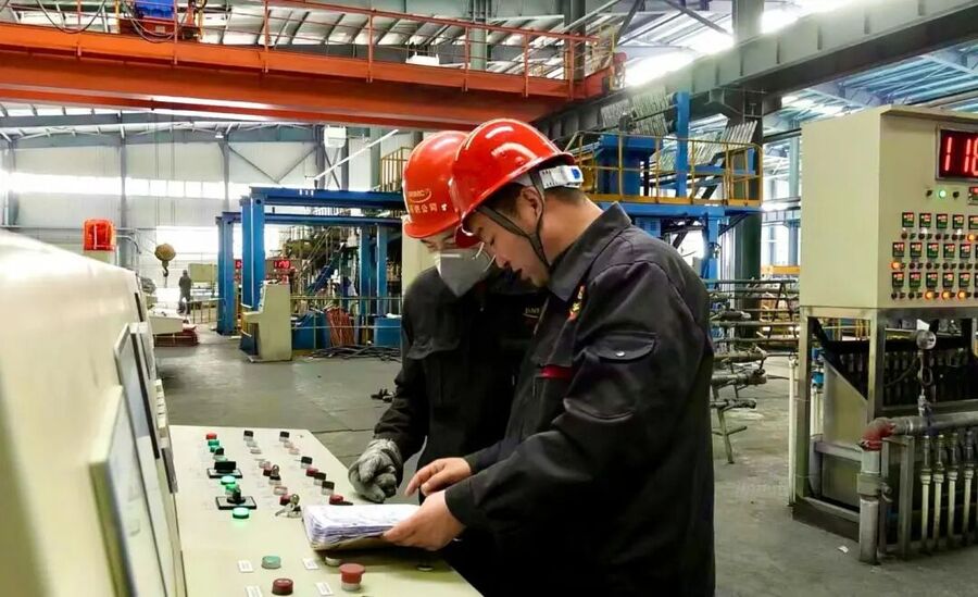 白银有色西北铜加工有限公司熔铸车间职工在巡检。受访者供图