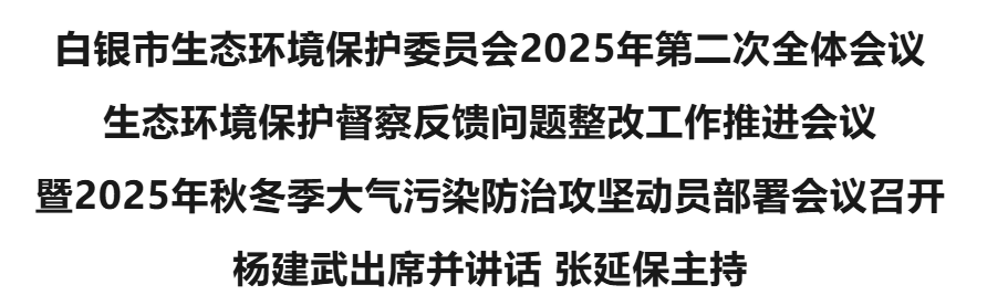 10月24日下午,白银市生态环境保护委员会2025年第二次全体会议、生态环境保护督察反馈问题整改工作推进会议暨2025年秋冬季大气污染防治攻坚动员部署会议召开,深入学习贯彻习近平生态文明思想,全面落实省委、省政府工作要求,对当前大气污染防治、生态环境保护督察反馈问题整改等重点工作再安排、再部署、再推进,全力推动全市生态环境质量持续稳定向好。市委书记、市生态环境保护委员会主任、市生态环境保护督察整改工作领导小组组长杨建武出席并讲话。