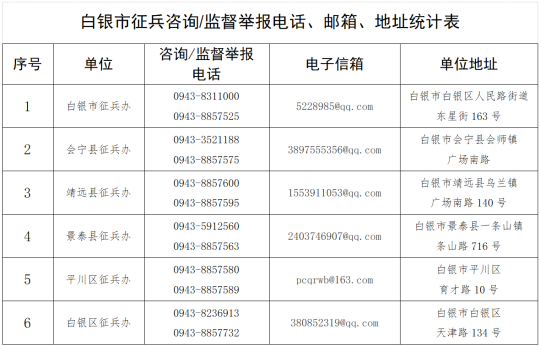 依法服兵役和进行兵役登记是每名适龄公民应尽的光荣义务和神圣职责,白银市2026年兵役登记和征兵报名已全面展开,现公告相关事项并公开信访举报渠道: