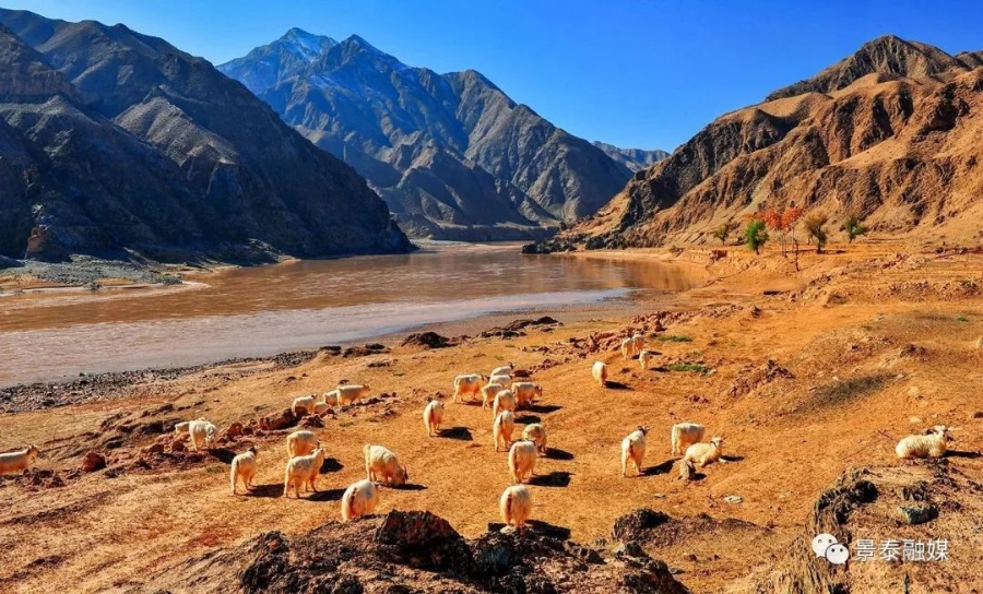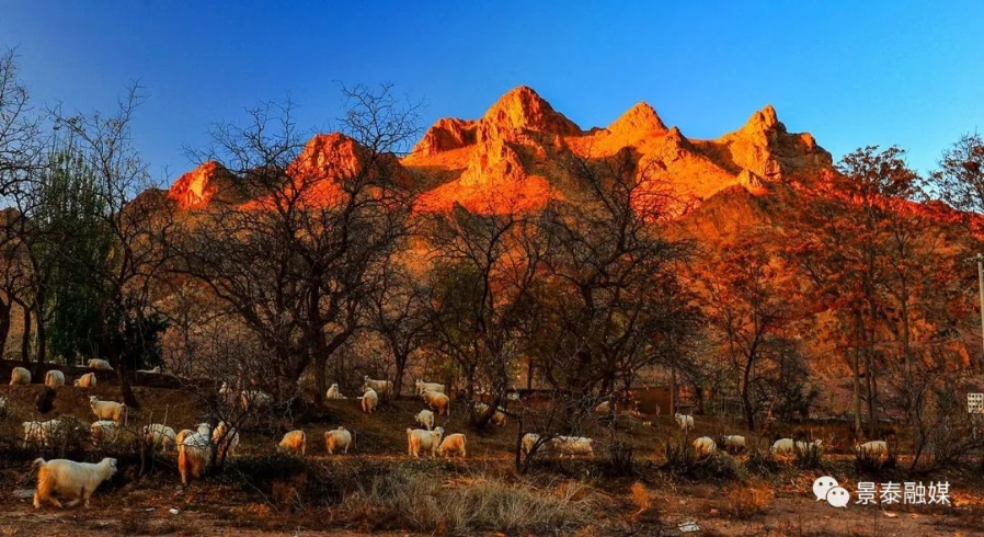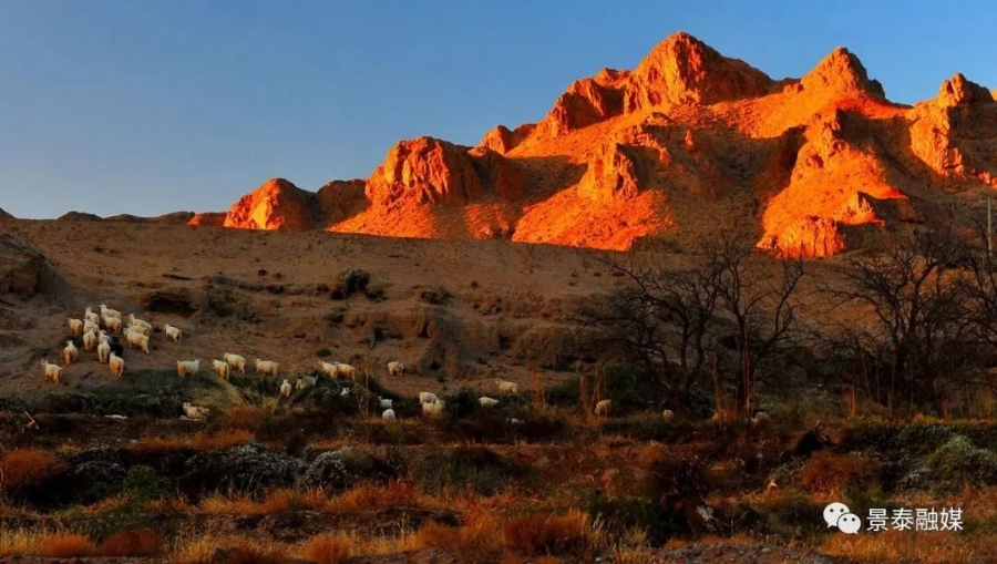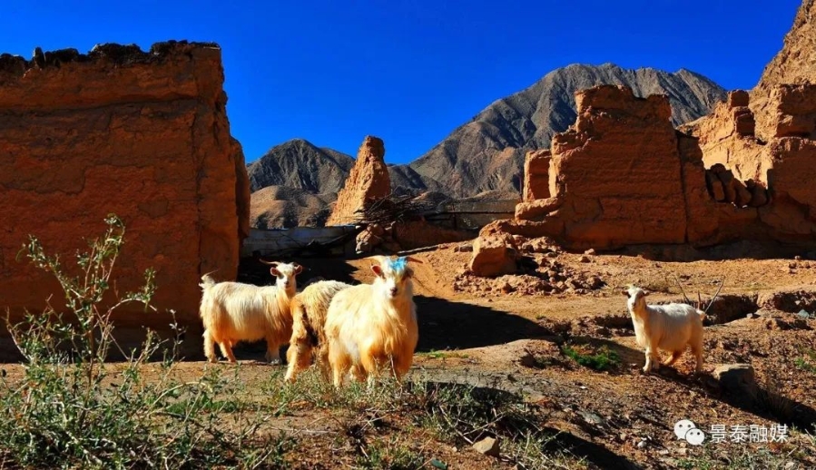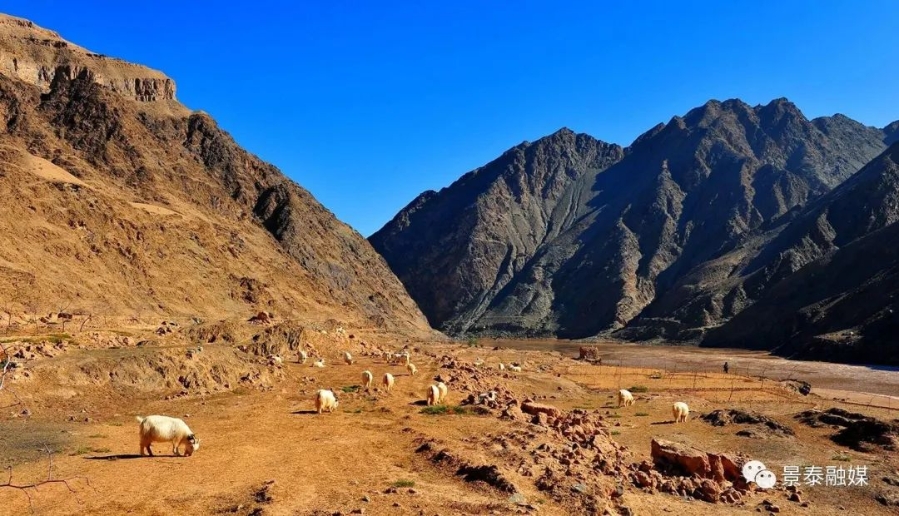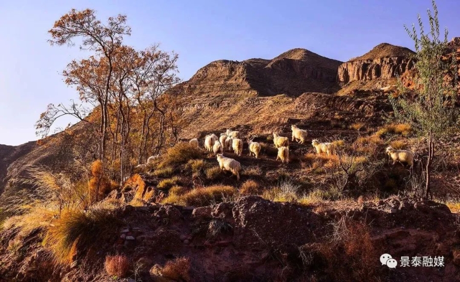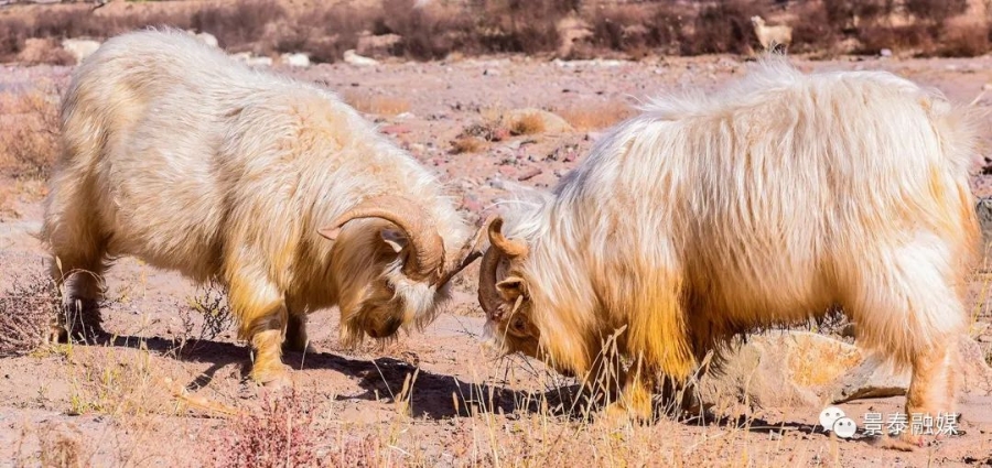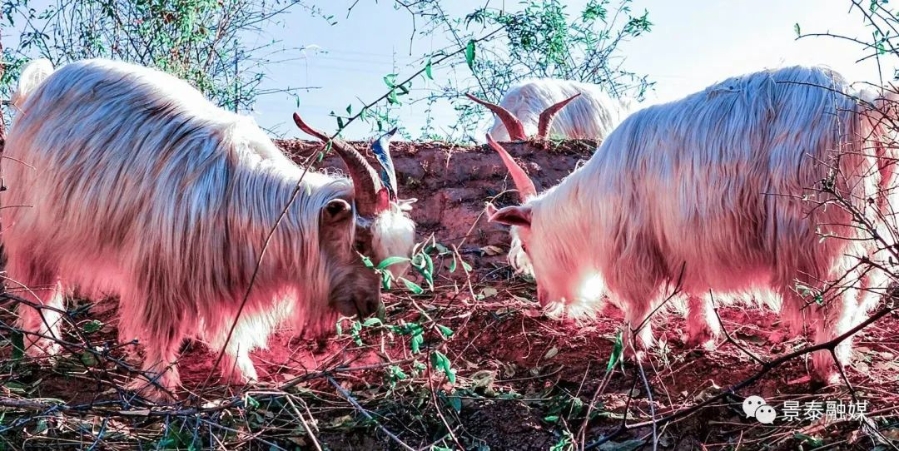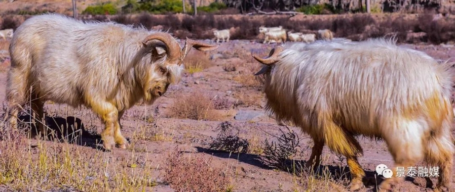 甘肃白银景泰县北纬37°高海拔山区漫山放养的翠柳山羊属于沙毛山羊,是裘皮山羊品种,是“吃着中药草料、喝着山泉水长大的绿色动物”。