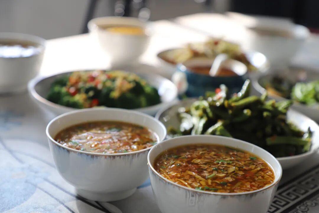 靖远臊子面的传承有着美好的传说,古时“嫂子面”因“嫂”“臊”谐音演变而来,如今已成为靖远人生活中不可或缺的美食。孩子满月、嫁娶、逢年过节、招待亲朋,餐桌上必有臊子面的身影,吃面的习俗也暗藏寓意——女婿初次上门要吃双数碗,寓意好事成双;寿宴吃长面,寓意长命百岁。2020年,靖远臊子面制作技艺被列入县级非物质文化遗产代表性项目,成为地域文化的重要符号。