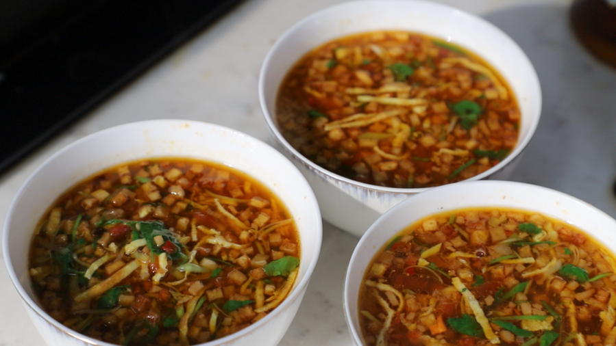 热气蒸腾的汤翻滚出醇厚香气,细长劲道的面条在沸水中舒展,浇上色泽诱人的臊子汤,撒上翠绿的香菜与金黄的蛋丝……在靖远县城的一间寻常厨房里,作为靖远本地人万立苹正熟练地制作着靖远臊子面。这道传统美食,不仅是靖远人餐桌上的佳肴,更是承载着一代代靖远人的乡愁与记忆。