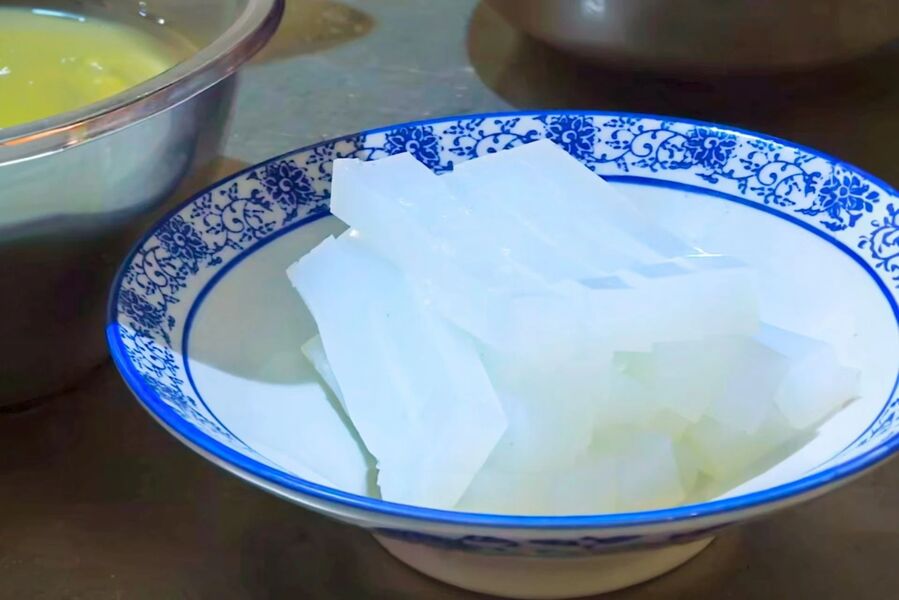 先将豌豆淀粉或荞麦淀粉缓缓加入水中