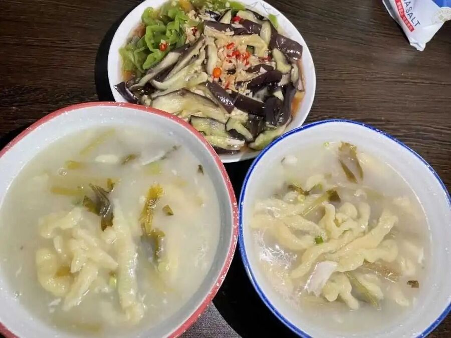 制作工艺中凝结着代代相传的生活智慧。和面讲究“手光、盆光、面光” 的物尽其用理念,醒发二十分钟的等待教会人耐心,用菜刀盛面、筷子拨面的独特手法尽显工具多功能性。“跌疙瘩” 这一方言里的制作动作尤为关键:将稠稀适中的面糊放在锅铲上,用筷子均匀拨入沸水,疙瘩大小需恰到好处才能保证口感均匀。而 “一锅出” 的烹饪逻辑更显精妙:先煮土豆块提供淀粉甜味,再下疙瘩赋予嚼劲,最后加浆水酸菜注入灵魂,层次分明的下料顺序藏着对食材本味的深刻理解。