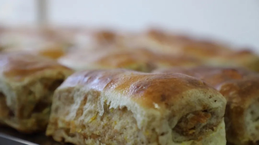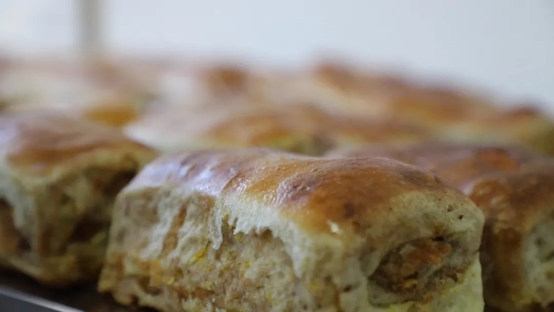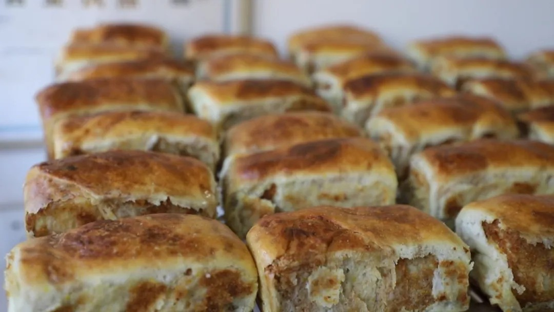 靖远扭酥的制作,藏着老辈人的匠心。选用本地出产的上等麦面,加水后经多小时自然发酵,再通过反复揉和,让面团变得筋道弹润。馅料的搭配更是讲究,白糖的清甜、鸡蛋清的嫩滑、大油的醇香交织,姜黄赋予其温润的色泽,红糖点缀出清雅香气,每一味佐料都分量十足,缺一不可。匠人巧手将拌好馅料的面团顺势扭曲,扭出自然别致的纹路,放入盘中送入烤炉,麦香与佐料香充分交融,最终烤成金黄酥软的模样。