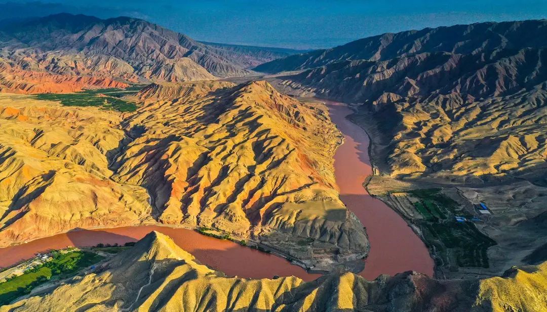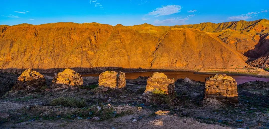 初秋,景泰黄河索桥堡古渡口遗址和黄河小口子渡口附近,