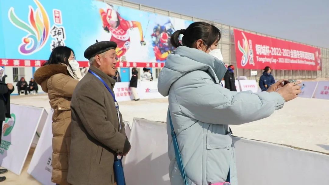 在2022-2023赛季全国冬季两项冠军赛的赛场旁,白银市文联的艺术工作者们认真的观看比赛,赛场上运动员们坚持不懈、奋勇争先的精神感染着每一个人。