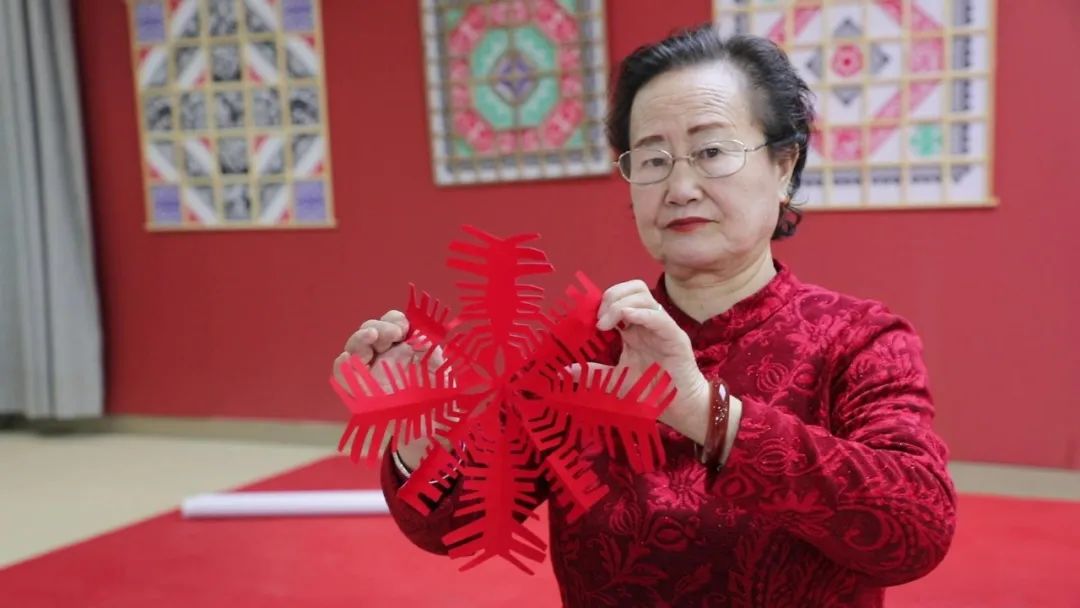 赛场外,在白银市群艺馆,白银剪纸省级传承人梁维珍正聚精会神的“剪雪花”。