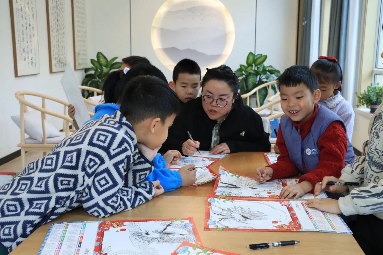 活动中,小朋友们积极参与互动,气氛十分热烈。小朋友们思路大开,小小巧手发挥独特创意,亲手绘制起属于自己的2024龙年年画。在他们的努力下,一幅幅象征着吉祥和美好寓意的年画就跃然纸上,大家互相展示自己的成果,沉浸在这份触手可及的文化魅力中。