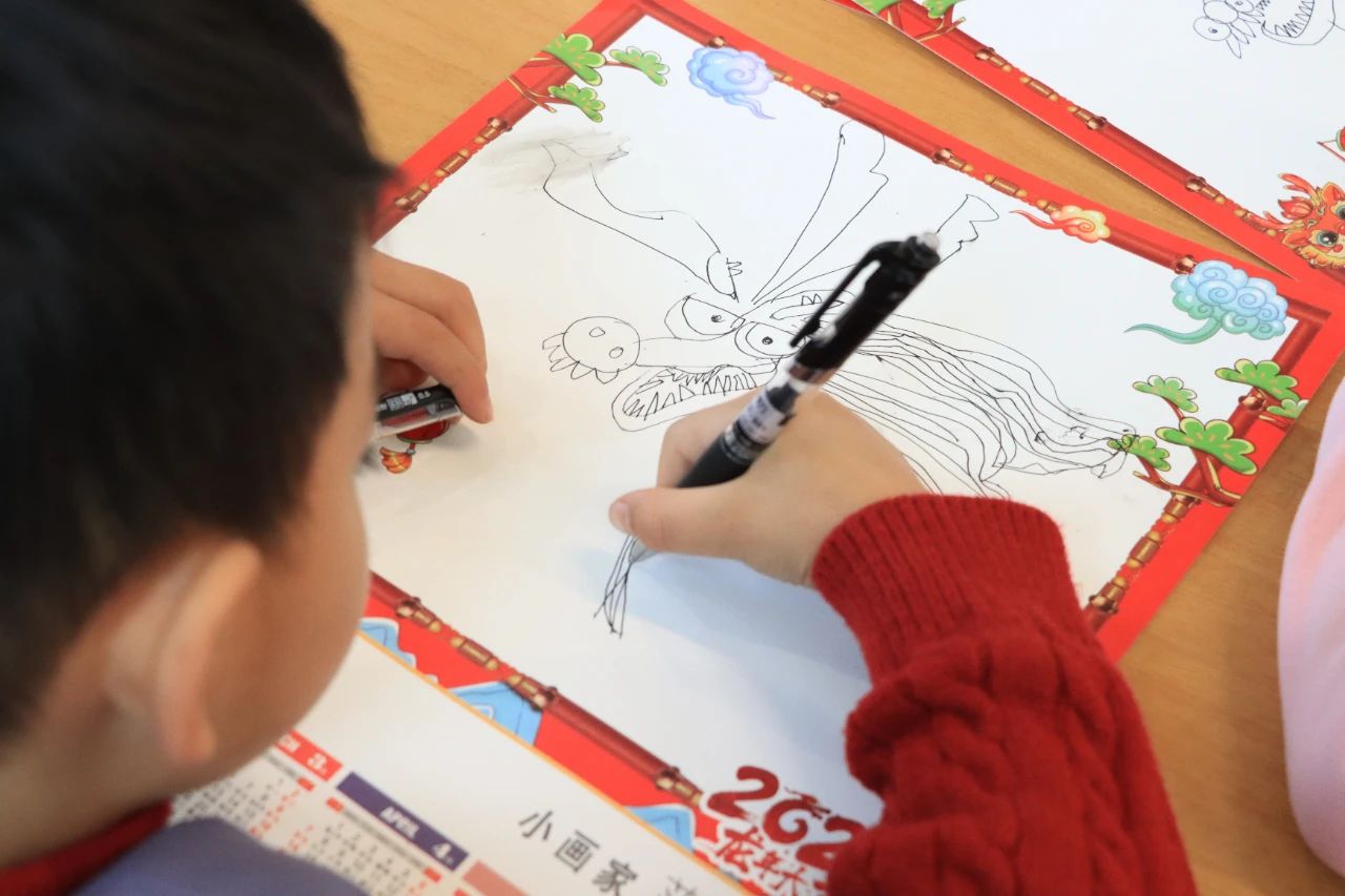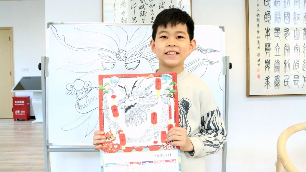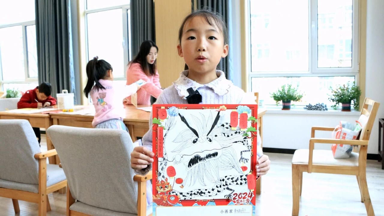 “今天参加这个活动特别开心。我对自己画的这条龙很满意。我还贴了很多灯笼,上面写满了祝福语。希望新的一年,我的学习成绩也越来越好。”孙梓瑜小朋友说。