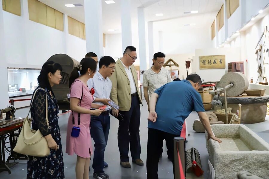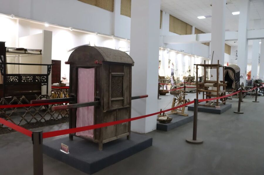 远山如黛,河帆远影,位于全民健身广场东侧的民俗文化博物馆的外墙装饰与民俗主题相得益彰,吸引着不少市民、学生走入参观。走入馆内,青瓷老井、农具药铺、花轿唢呐……琳琅满目的老物件,展现着过往岁月里人们躬耕劳作、生产生活的情景风貌,仿佛向人们讲述着一段段尘封已久的故事。