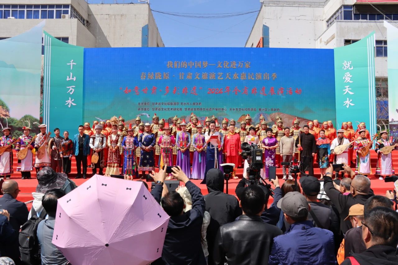 “非遗助旅游,烟火闹秦州。”展演活动由甘肃省文化和旅游厅主办,甘肃省文化艺术研究院、甘肃省非物质文化遗产保护中心共同承办。荟萃了甘肃非遗文化的精髓,邀请全省极具特色的非遗传承人带来各自的“看家本领”,有黄河战鼓、木人摔跤、冬不拉弹唱、陇东民歌、杖头木偶、秦腔联唱、文县土琵琶、西北花儿、秦安老调、崆峒武术等展演类非遗项目,囊括了独具风情的少数民族民歌演唱、欢快热闹的民俗表演,内敛深厚的乐器弹唱等,将全省各地的非遗资源全方位、多角度展示出来。