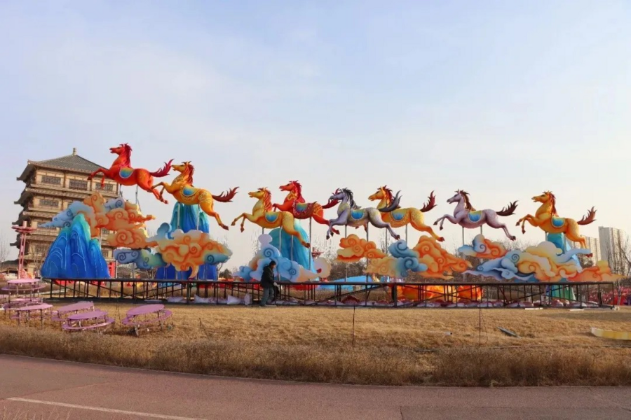 腾飞文化艺术有限公司总经理李玉平说:“本次灯会以‘骏马迎新春 铜城启华章’为设计主题,计划在2月10号小年前正式亮灯。”