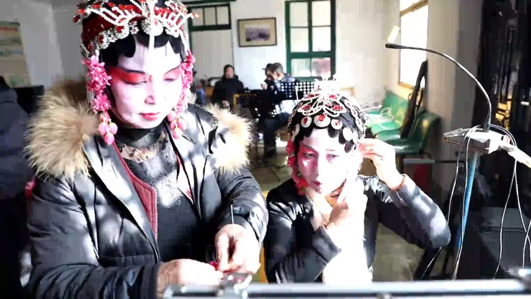 2026年1月19日,农历腊月初一,白银区水川镇大川渡村里寒意侵人,村里的曲子戏传习所内却暖意融融。化妆镜前,一笔一划描摹眉眼;琴架旁,一丝一缕调试弦音。白银区西厢调艺术团乐手高维民正轻抚自制二胡,琴筒上斑驳的蛇皮见证着岁月,他告诉记者:“这把二胡与现在的乐器相比落后得多,但比起过去的葫芦,已是跨越。”