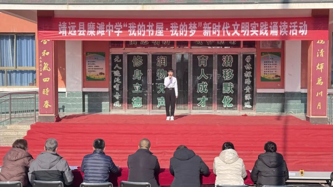 【靖远县糜滩中学学生 王静怡】参加这次活动,我觉得对我帮助很大,书籍就像一座桥梁,我们在书中汲取知识和力量,而诵读则让这些文字“活”了起来,帮助我们更坚定地追求梦想。