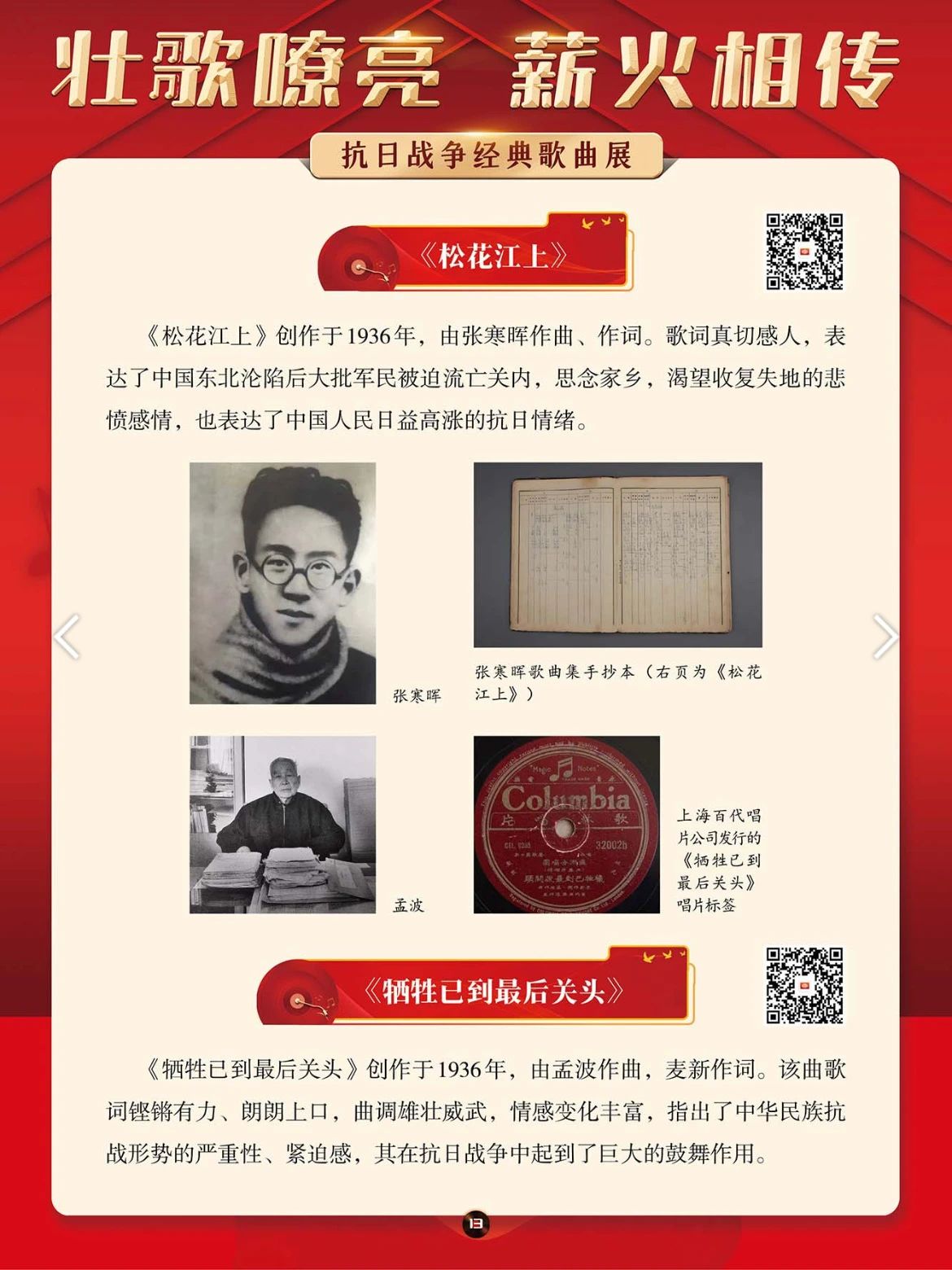 白图特展 | “壮歌嘹亮 薪火相传——抗日战争经典歌曲展”