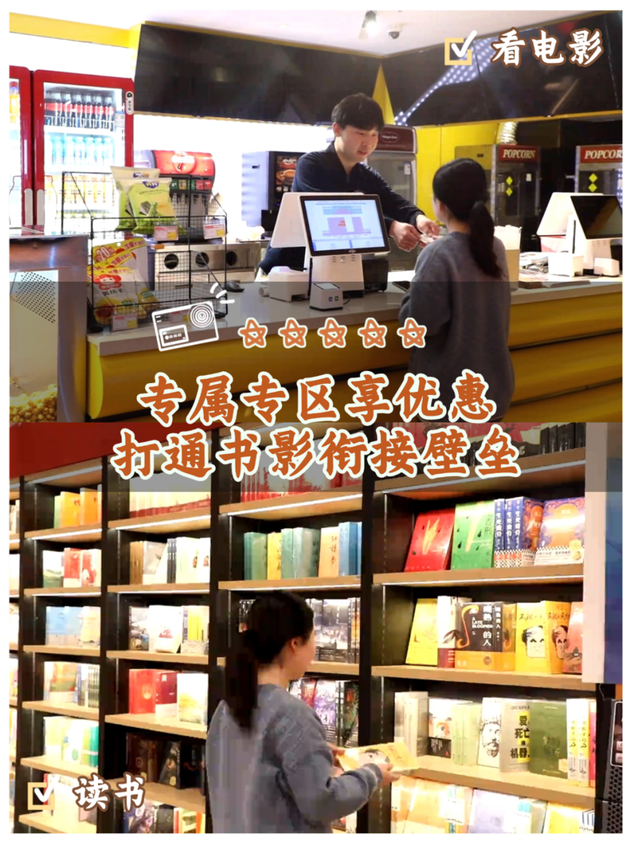市民张悦对此赞不绝口:“我在楼下吾言书店买了两本书,店员告诉我和楼上的电影院有联动优惠活动,我就上来观看了一场电影,感觉非常划算。能以半价看电影,我还是头一次体验,这个活动特别好,体验感满满。