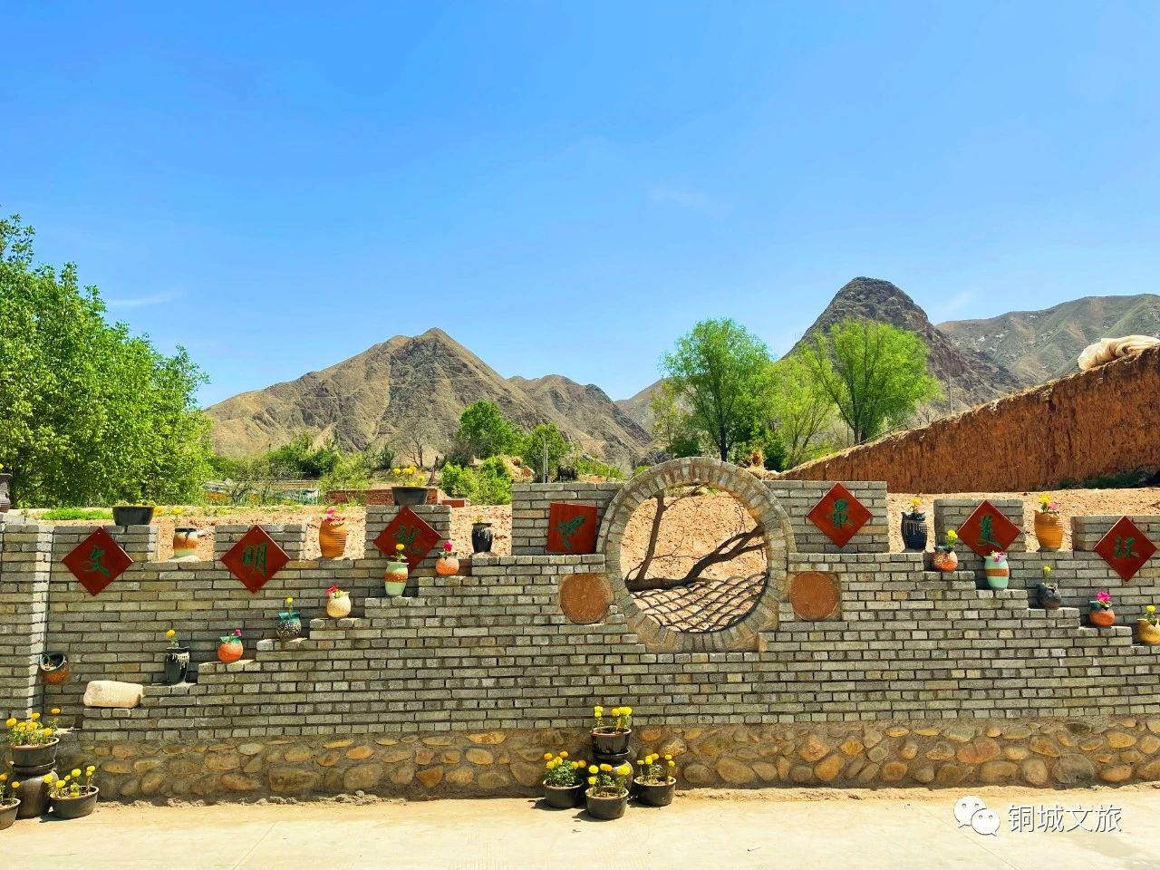 十里梧桐大道,与湿地公园十里黄河风情线相接,沿途旧屋改造而成的田园仿古式驿站,坐落在绝美的风景里,朴素灵动,自成一景。沿着五柳村盐沟路漫步其间,18面景观文化墙承载着五柳村的乡愁、乡韵、乡情,记录着五柳村民古往今来的生活演变。