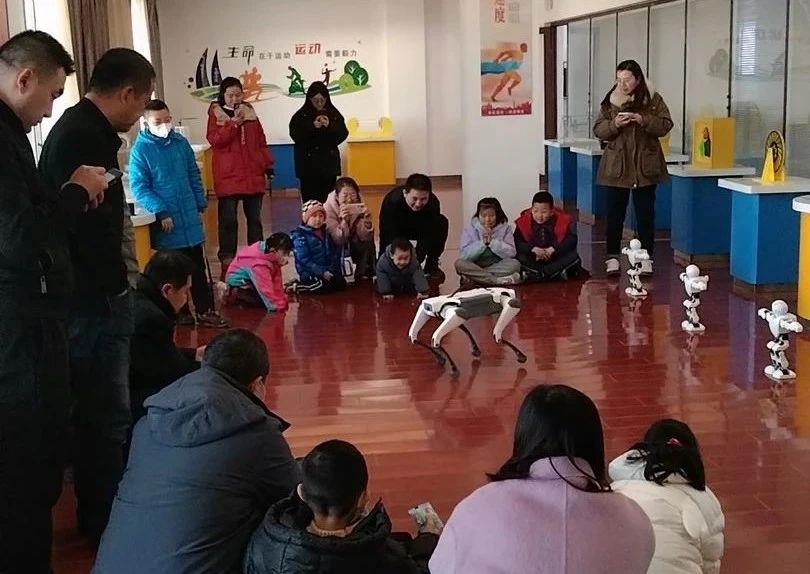 首先上场的是憨态可掬的“机器狗”,在工作人员的操控下做出快慢跑、太空步、后空翻、打招呼、打滚等各种有趣的动作,灵活的步伐、多变的姿态,还能与人近距离互动,让孩子们惊喜连连,开启对智能科技的无限畅想。