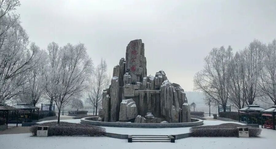 大坪农业园的雾凇与黄叶相映成趣,水川湿地公园的芦苇在微风中沙沙作响。湖面雾气缭绕,与岸边的雾凇林构成一幅如诗如画的水墨画卷。