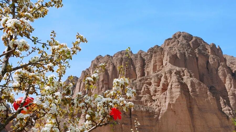四月的春风拂过黄河两岸,为雄浑的黄河石林披上了一层温柔的春装。龙湾村的农田里,杏花如雪、梨花似云,一树树一簇簇点缀在石林脚下,粉白相间,暗香浮动。坚硬与柔美、苍凉与生机,在这里奇妙地融为一体,构成了一幅动静相宜、浓淡相宜的春日画卷。
