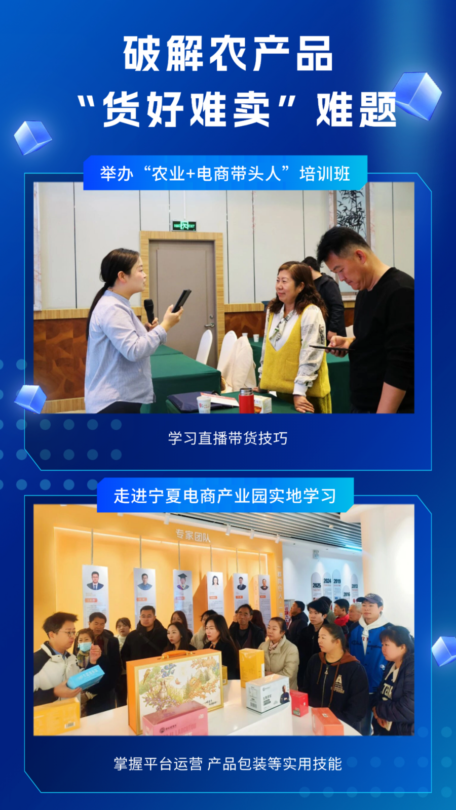 为破解农产品“货好难卖”难题,白银区精准发力电商赋能。11月份举办的“农业+电商带头人”培训班上,强湾乡种植户罗冬梅学得格外认真:“以前不知道怎么卖特产,现在学会了直播技巧,回家就建直播间。”为期10天的培训采用“课堂教学+实践观摩”模式,50名学员走进宁夏电商产业园实地学习,掌握平台运营、产品包装等实用技能,合格者获颁《高素质农民培育证书》并享受1年跟踪服务。